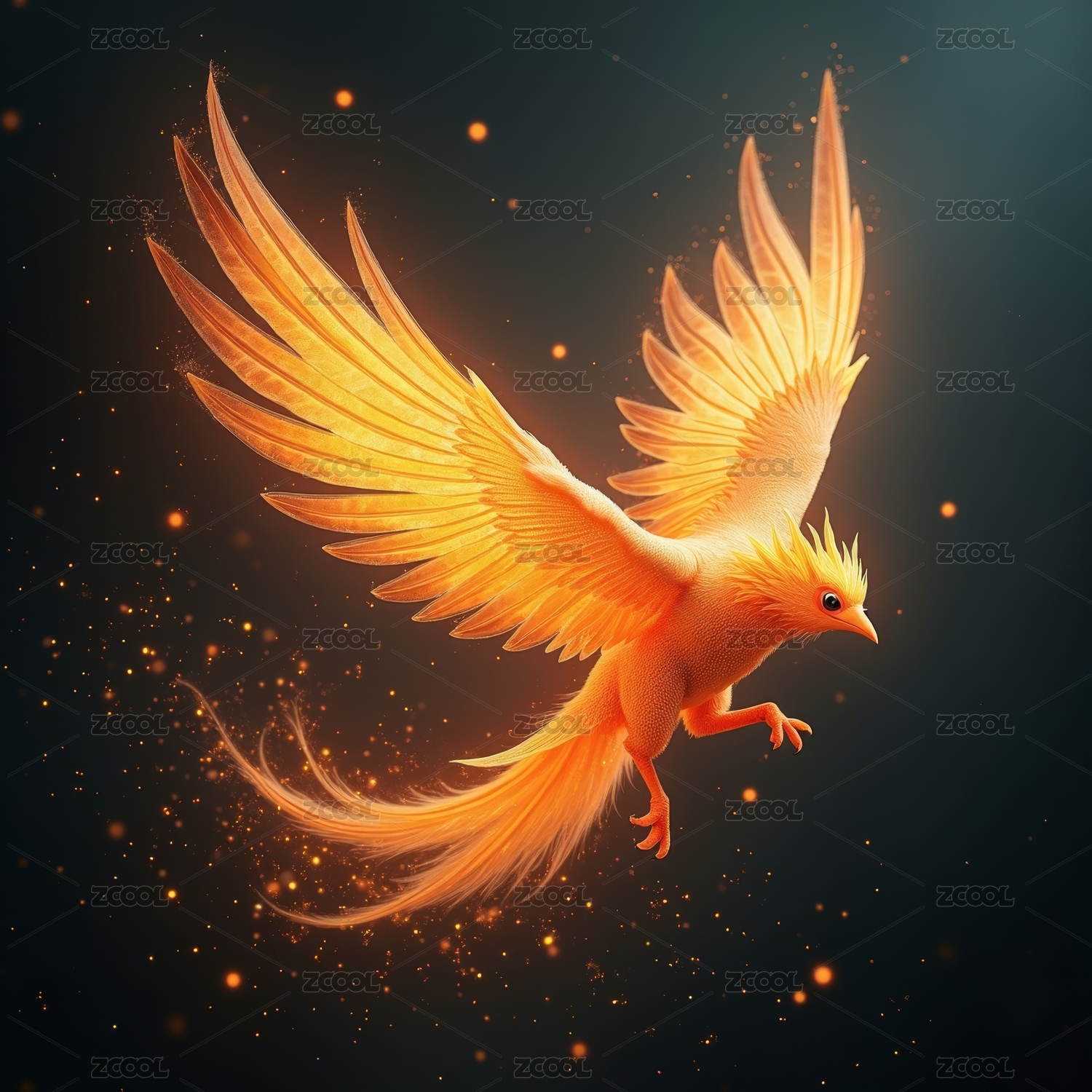 山海经神话传说天空飞翔火凤凰3D立体插画