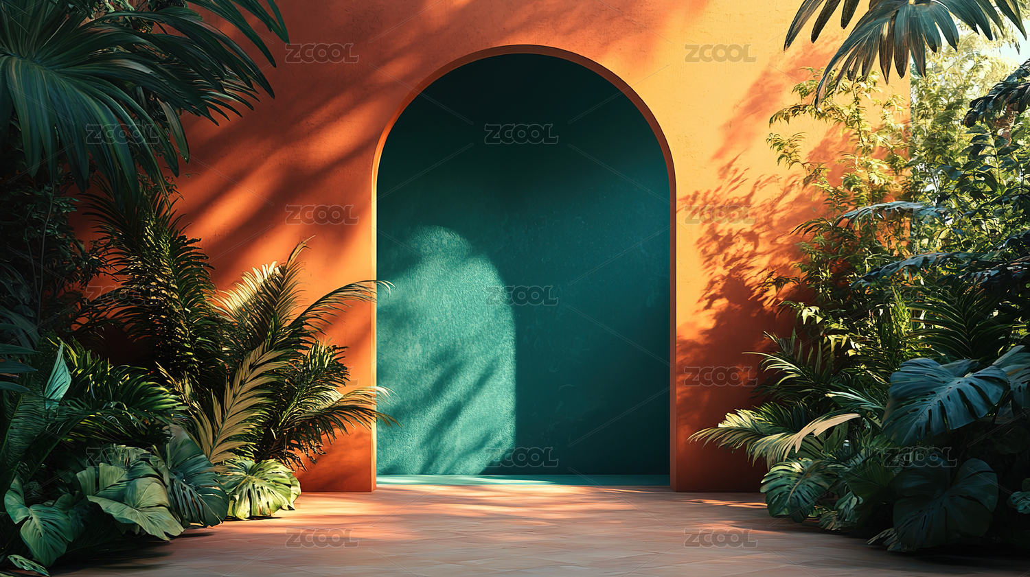 绿色拱门植物背景