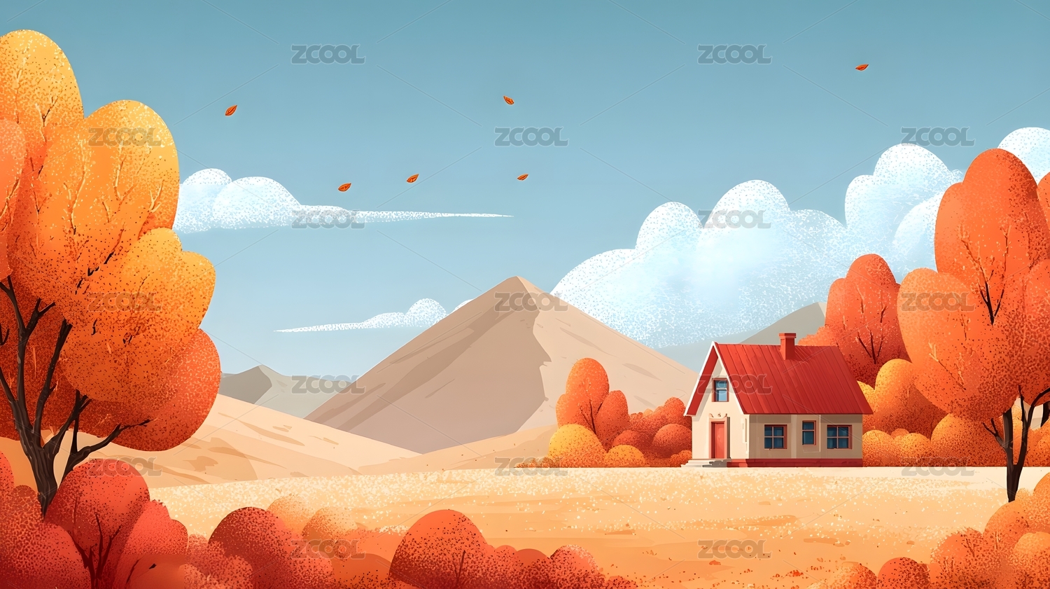 秋日小屋与橙色树