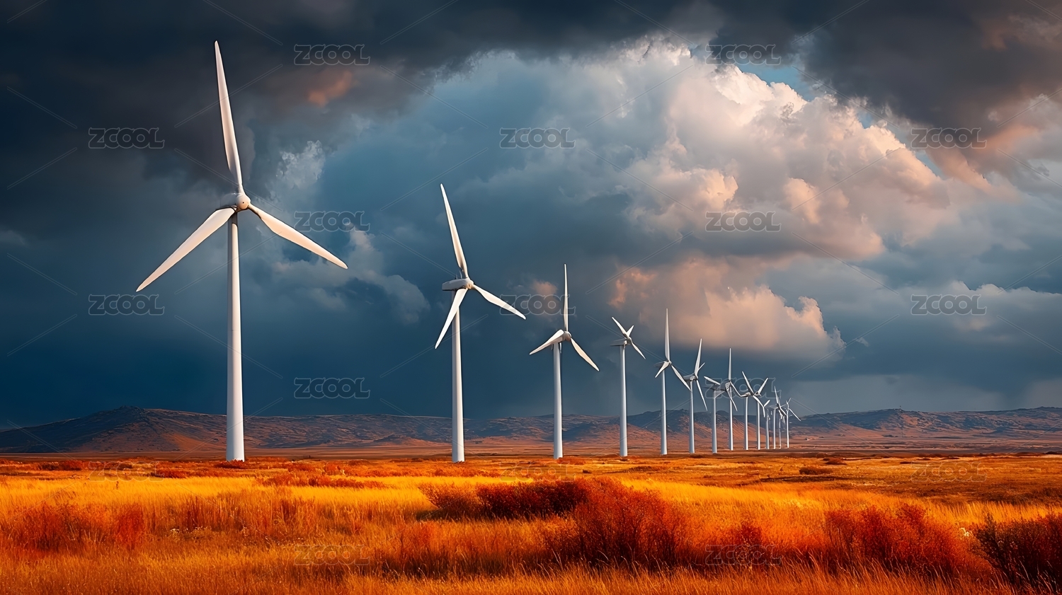 风力发电场与秋日草原