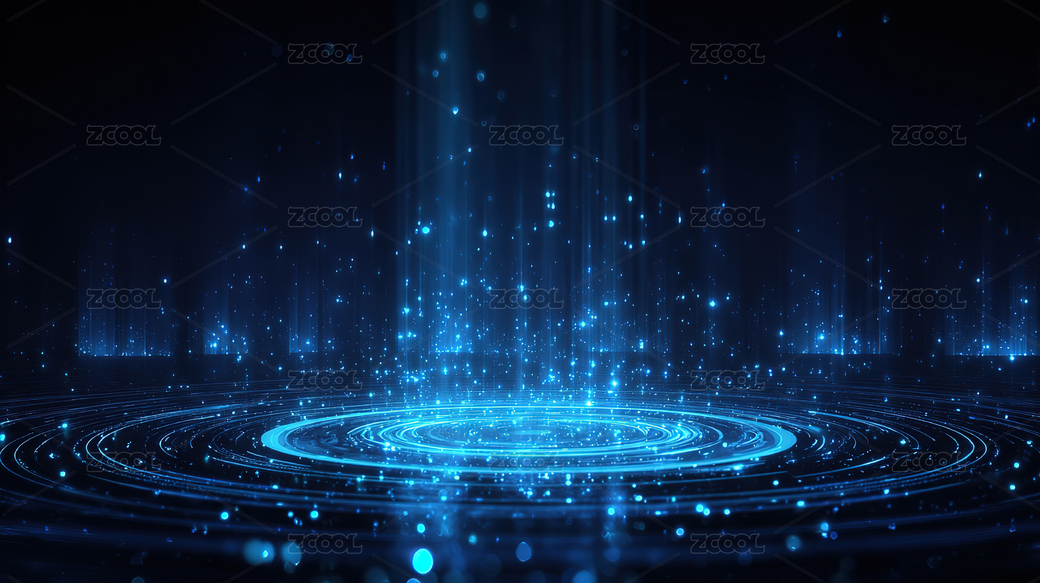 蓝色光环与粒子的抽象背景
