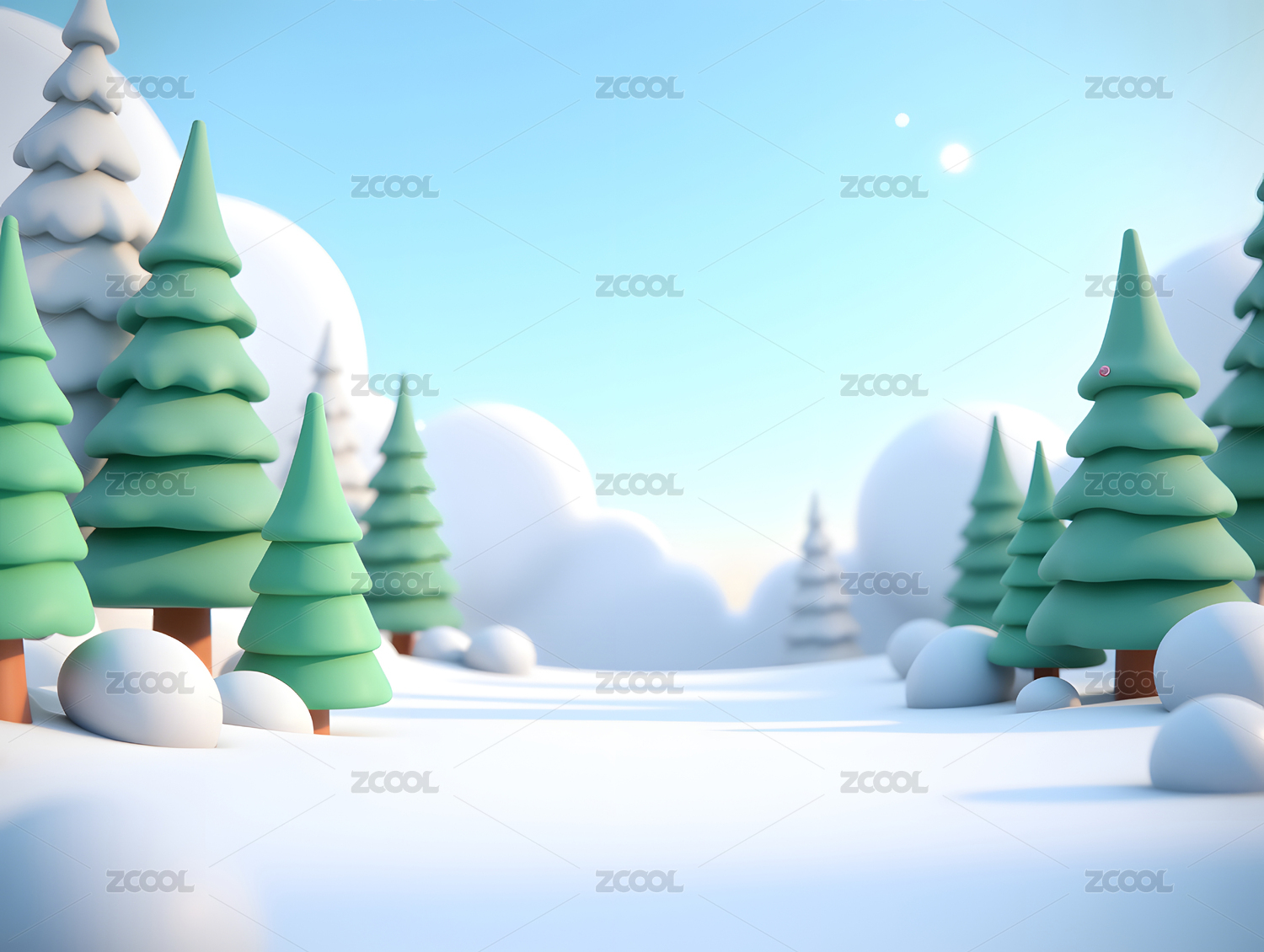 冬季,雪景,森林,树木,蓝天,白云,卡通,自然,户外
