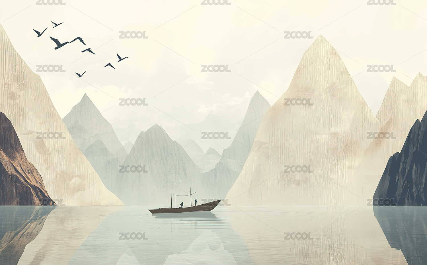 平静湖面上的孤舟