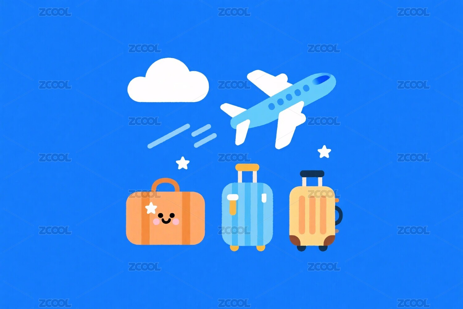 卡通旅行行李与飞机插画