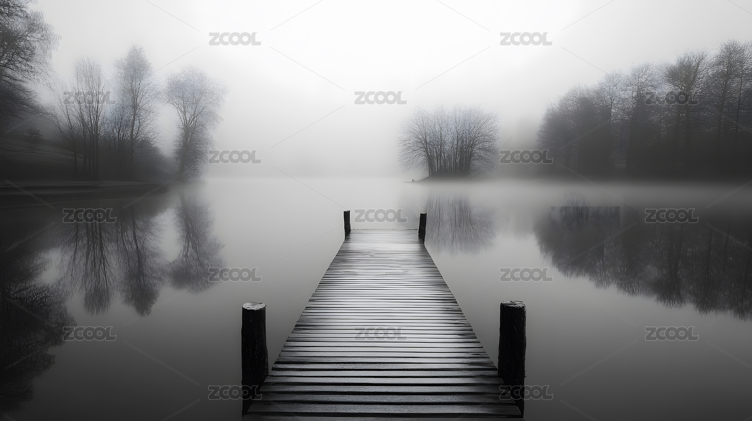 雾霭沉沉湖边静谧