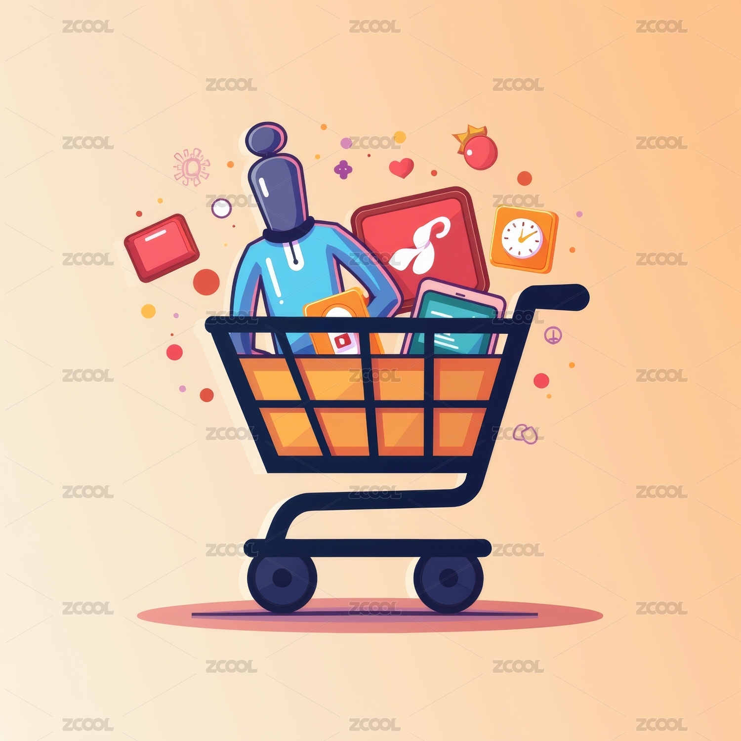 设计,装饰,图标,标识,画面,元素,购物车,商业,彩色