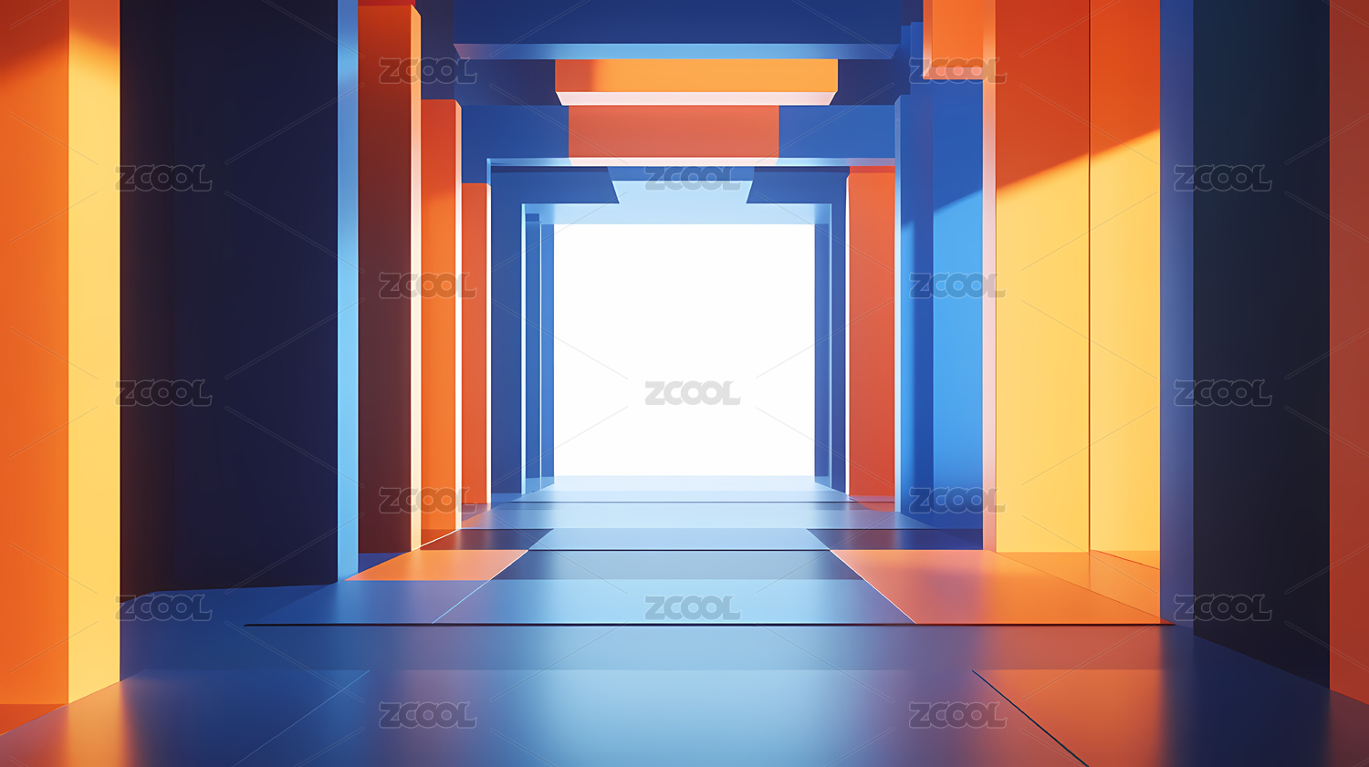 橙色背景下的空走廊