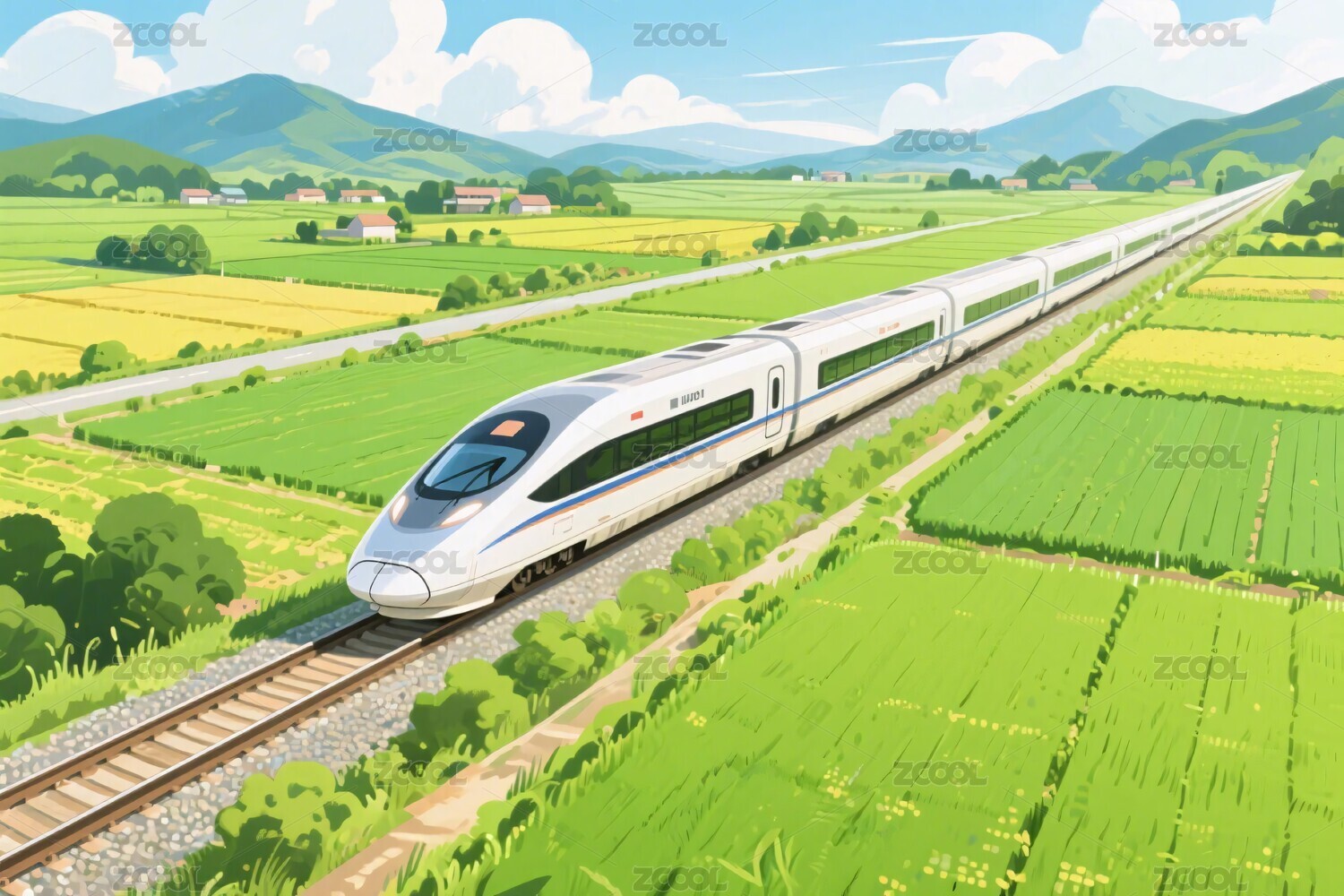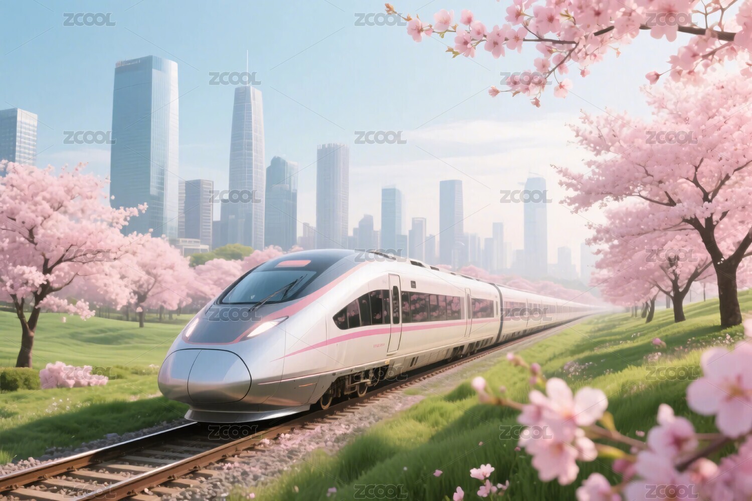 高铁,樱花,列车,道路,自然,风景,草地,花朵,轨道,春天
