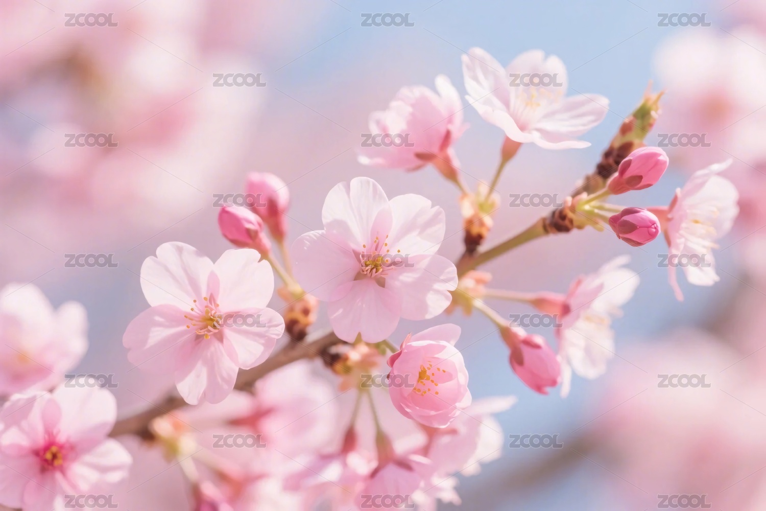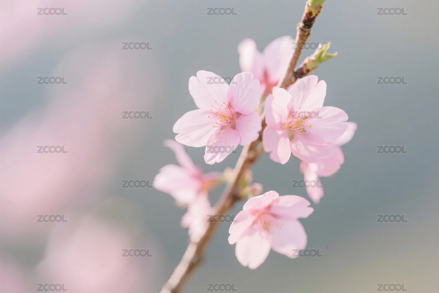 樱花枝柔粉花朵