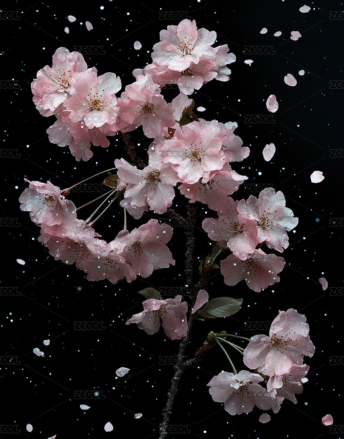 白色背景中的大山樱的花枝(Prunus sargentii)