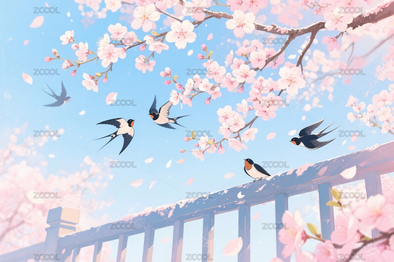 春日燕子樱花风景