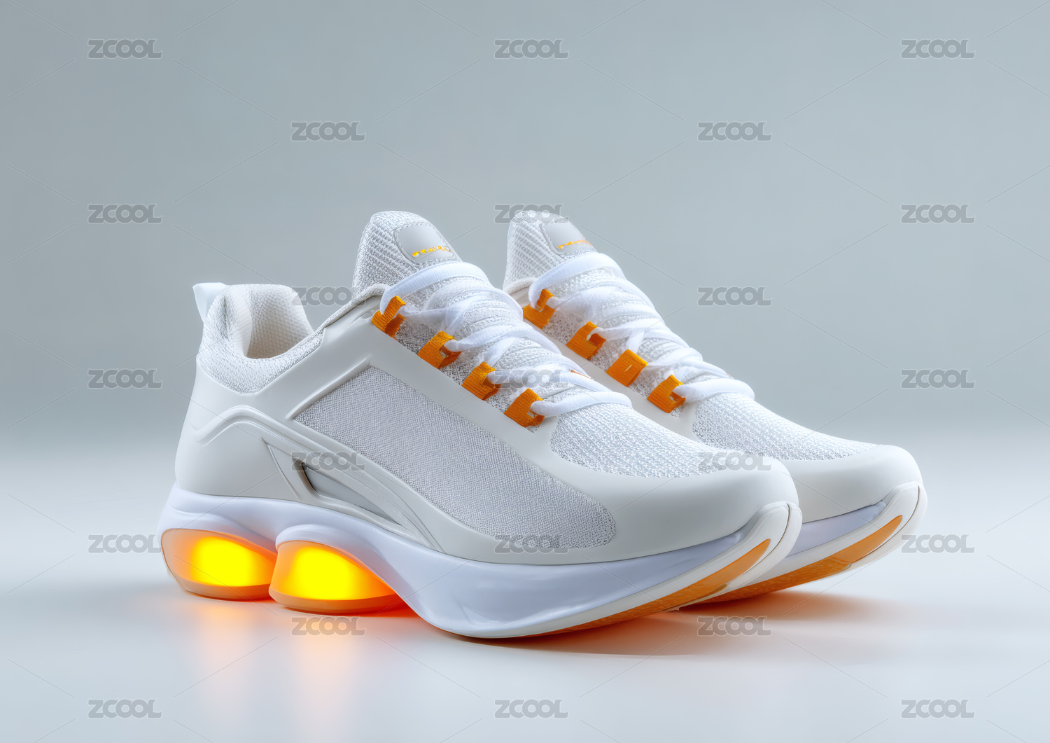 白底背景上一双发光的运动鞋