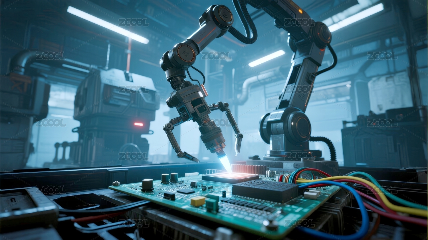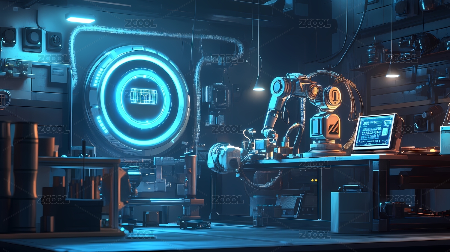 机械臂,机器人,工业设备,机械手,科技,实验室,厂房,管道,机械结构,科技场景