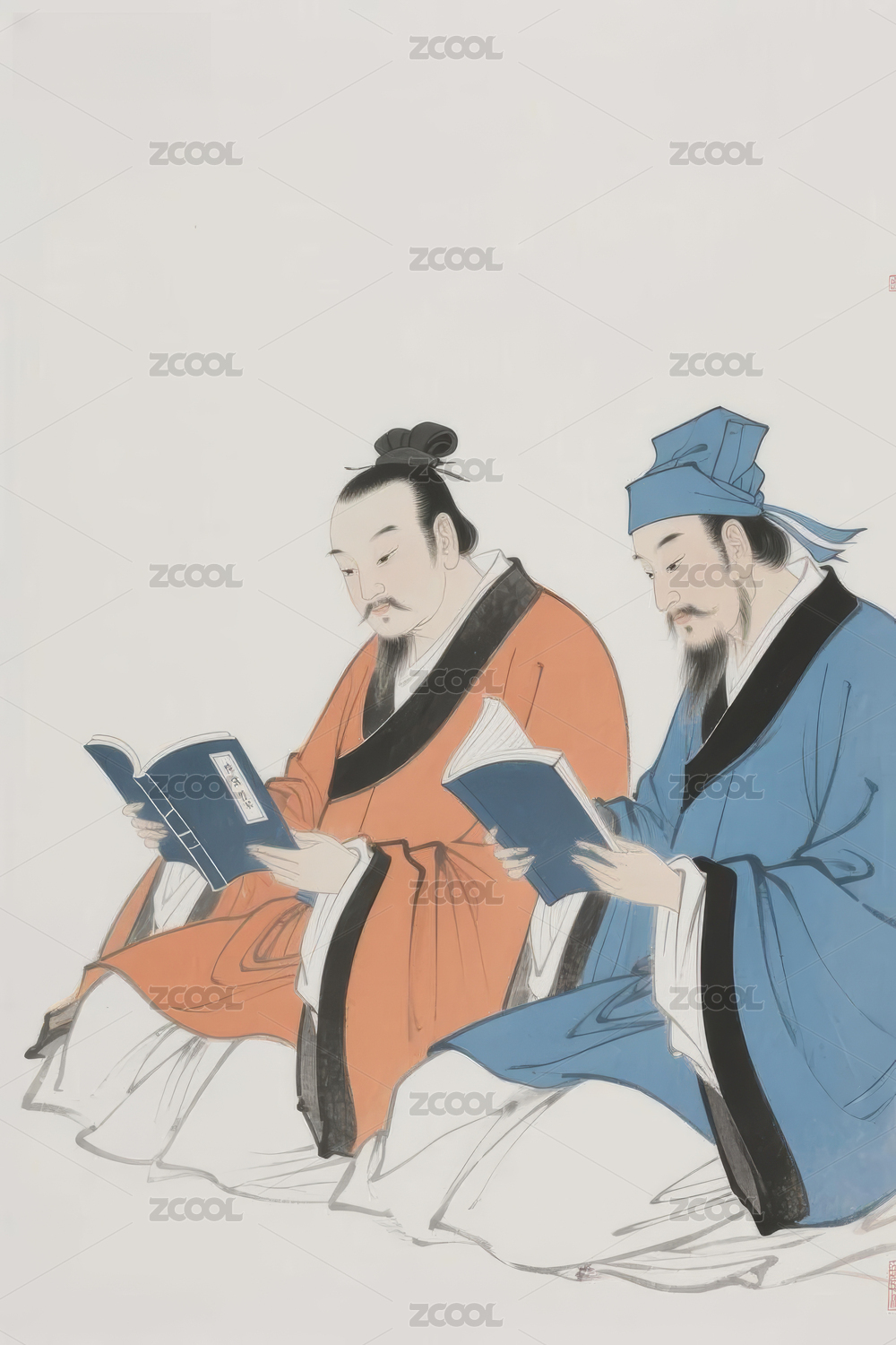 读书,古代,文人,服饰,插画,书本,古籍,场景,文化,传统