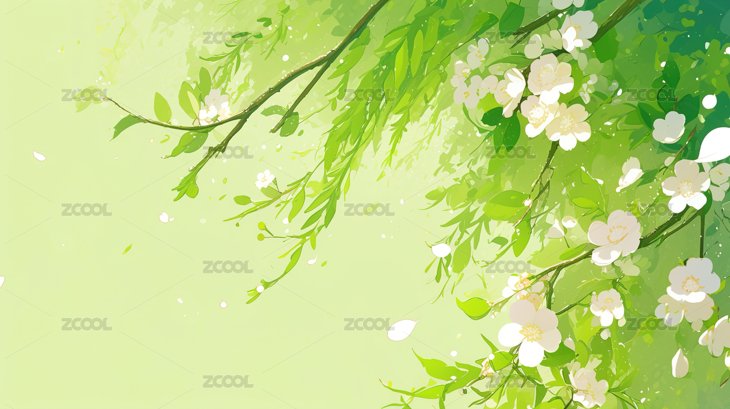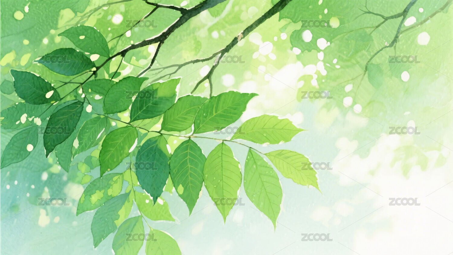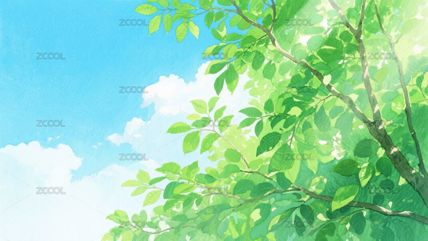 绿叶,阳光,天空,插画,自然,清新,画面元素,背景,风景,植物