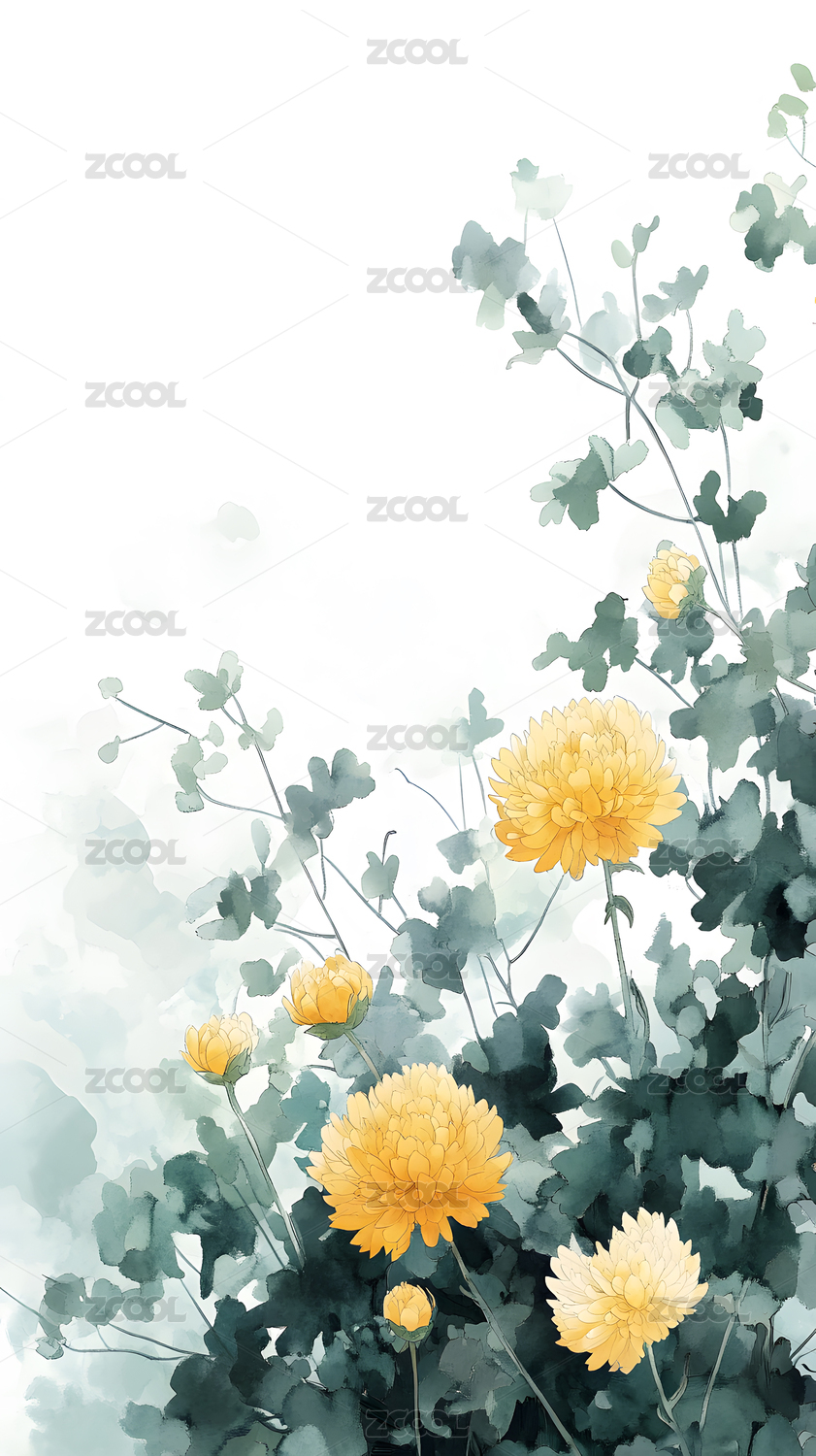 水墨风格黄色野花图