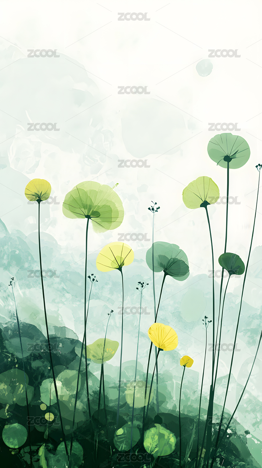 水墨,背景,意境,自然,植物,笔触,画面,花朵,绿色,白色