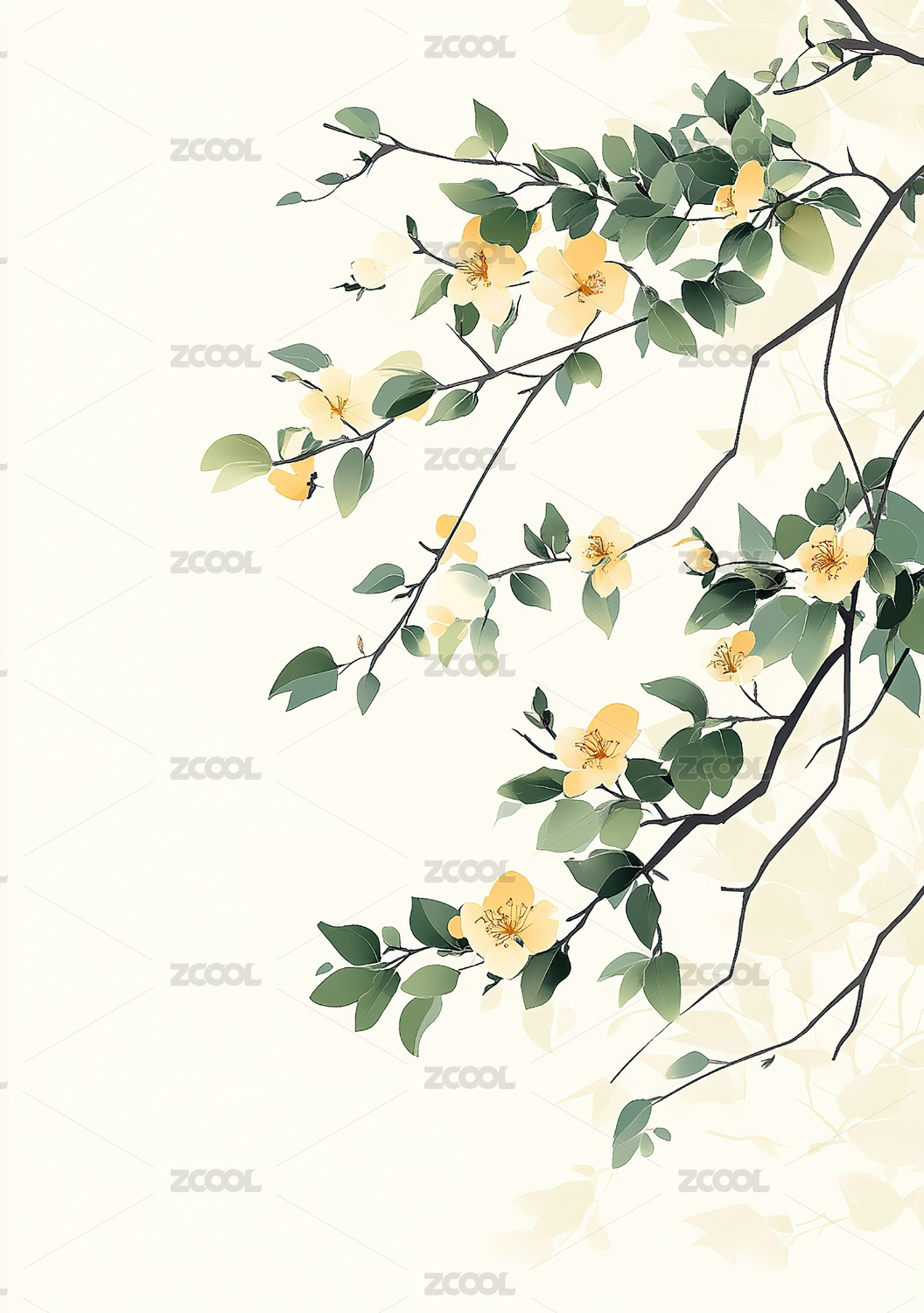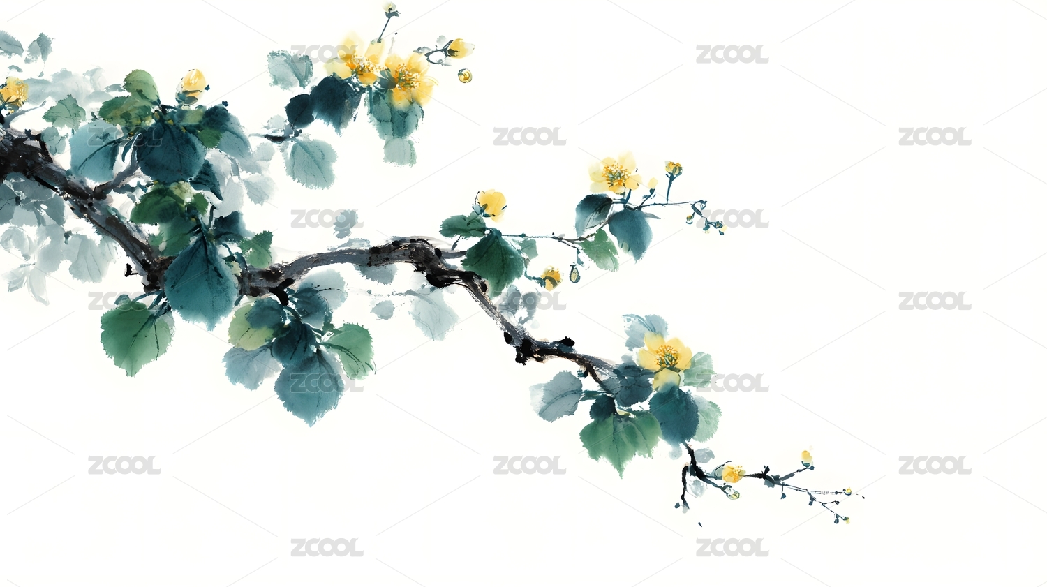 线条,植物,自然,花朵,水墨,中式,写意,画面,留白,树枝
