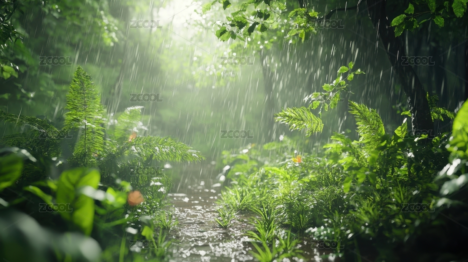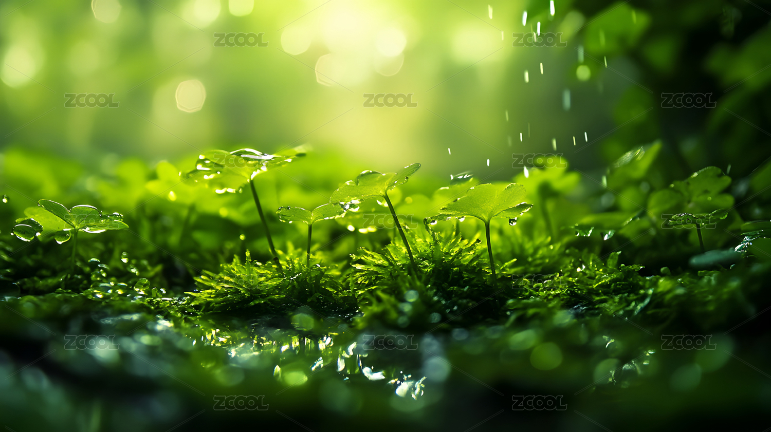 森林,小径,绿叶,雨滴,自然,静谧,画面,插画,风景,植物