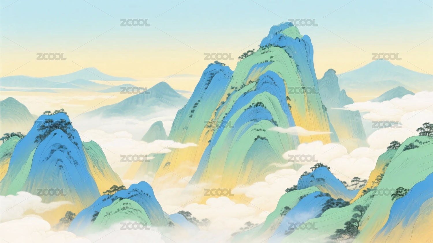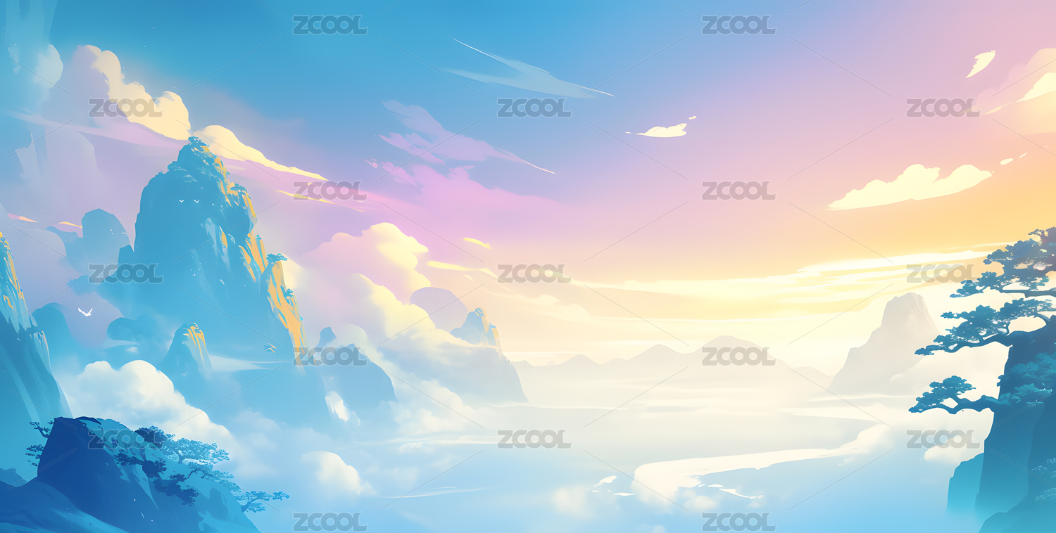 梦幻云端群山插画