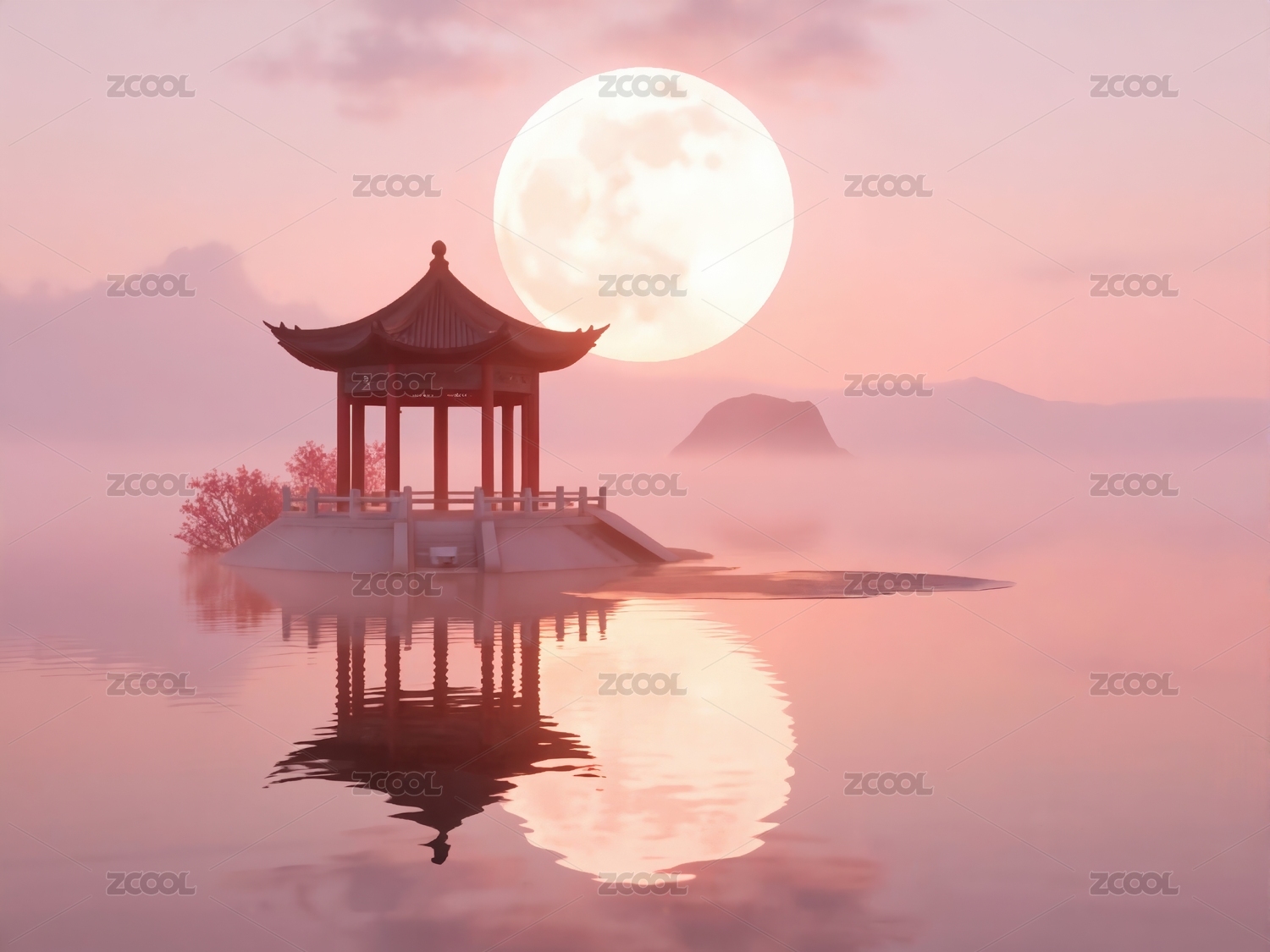 湖边凉亭赏月