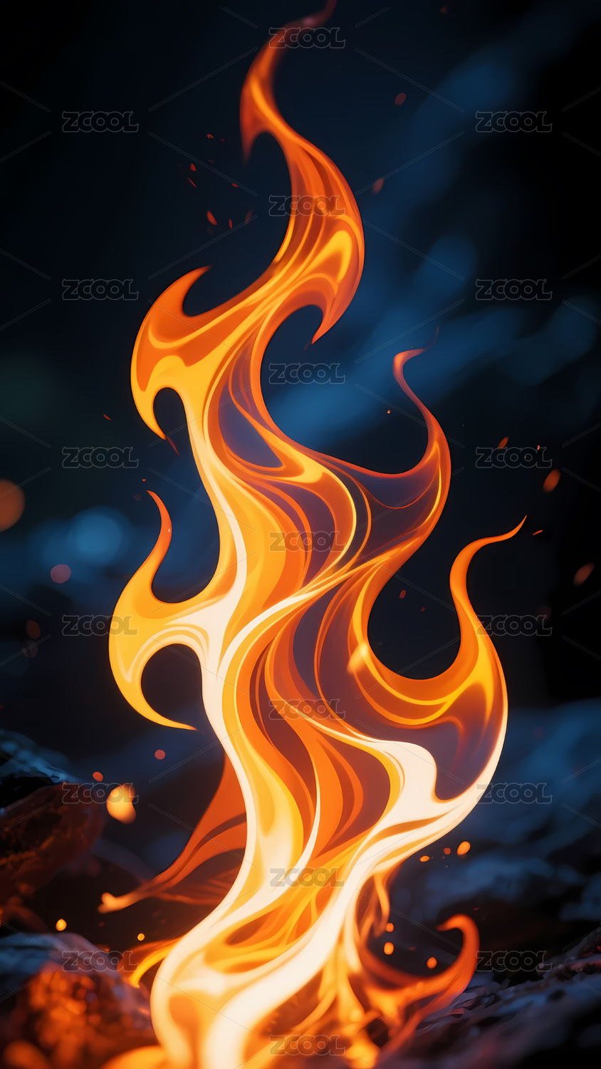 燃烧的火焰,橙色火焰在黑暗中闪耀