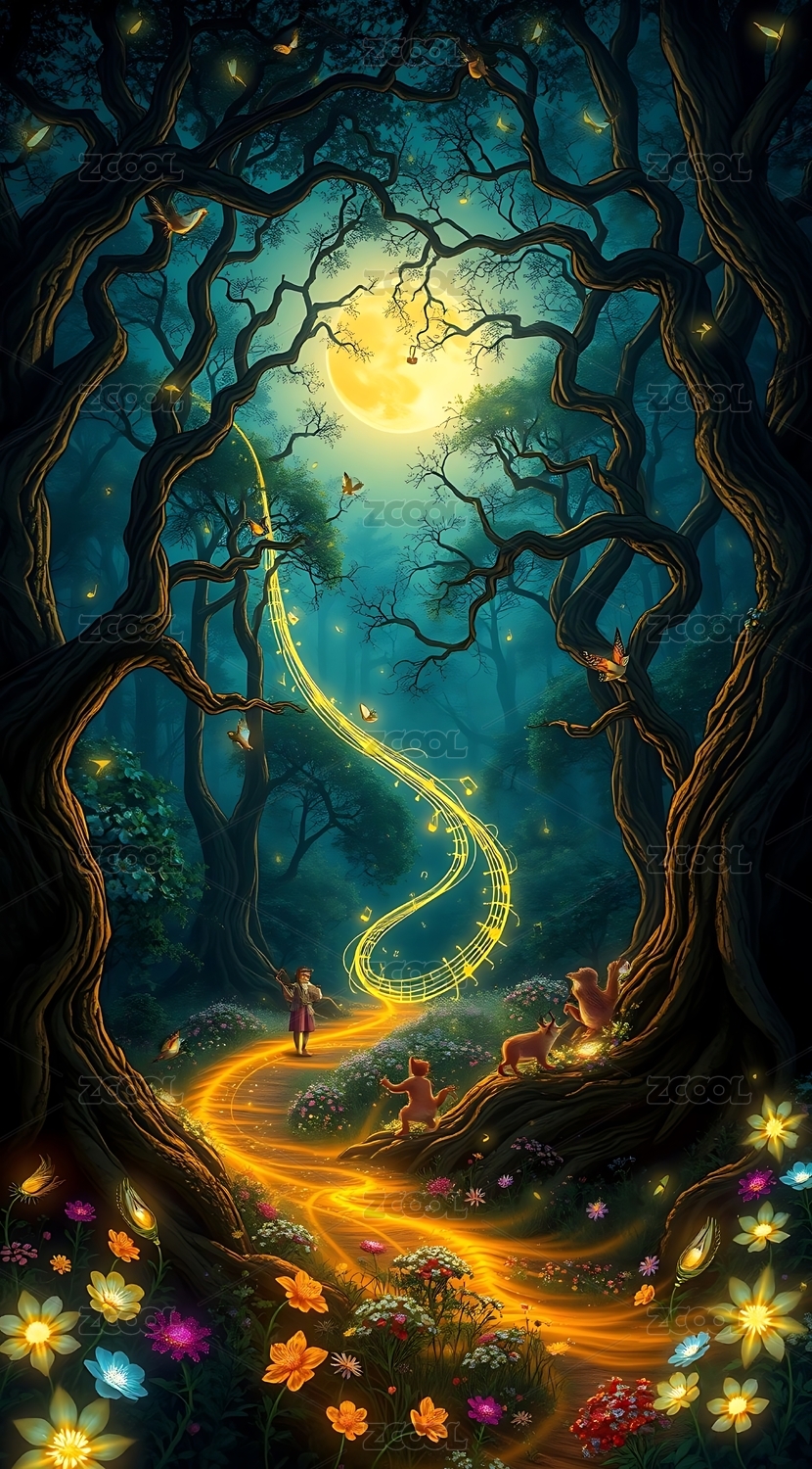 夜幕下的梦幻森林
