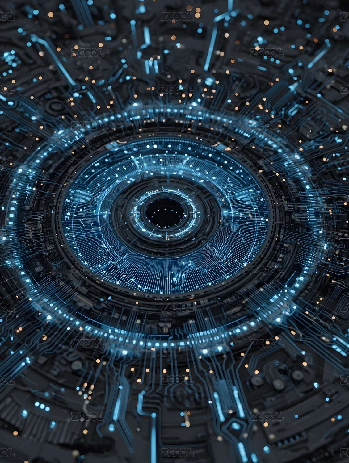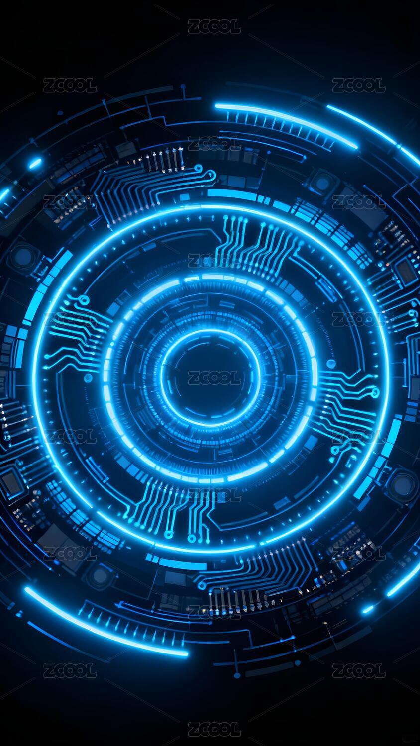 抽象科技蓝色圆环线条光圈对称放射状圆圈