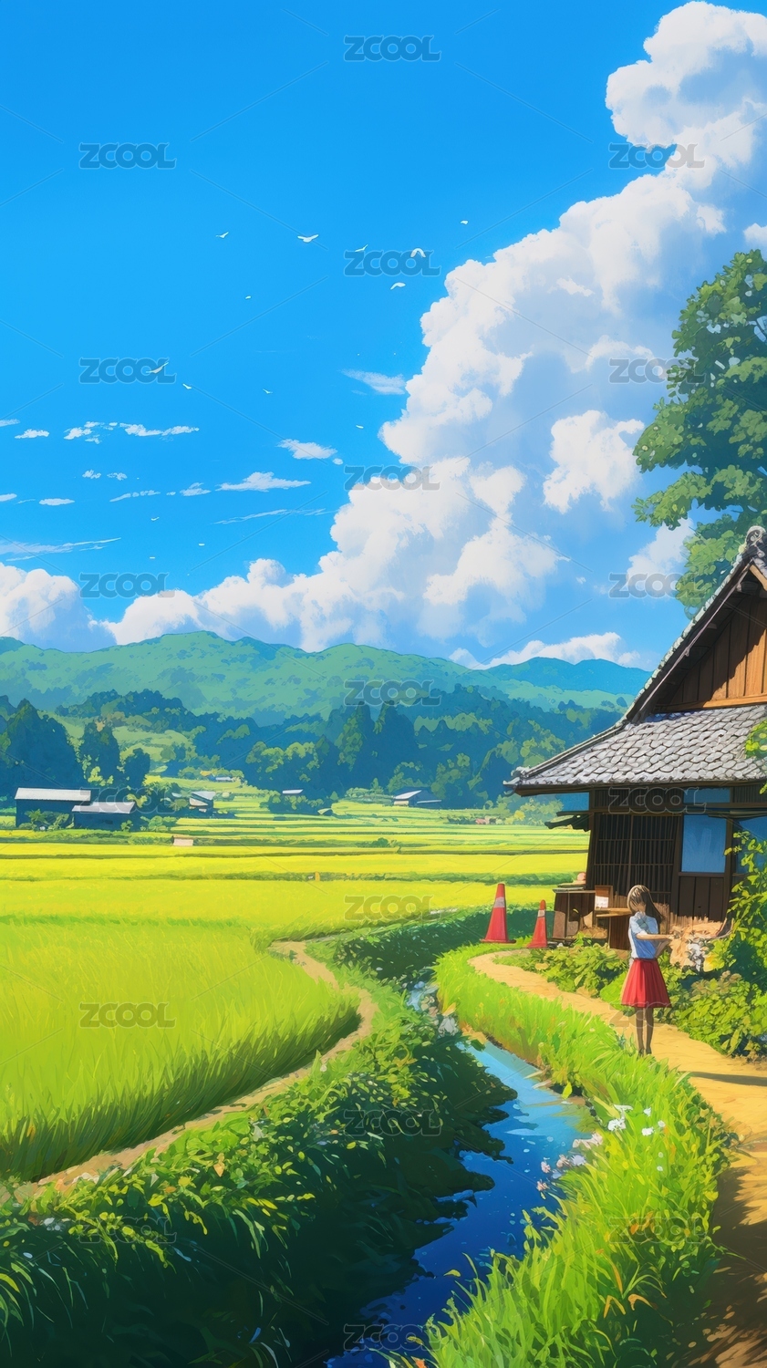 清新田园风景插画