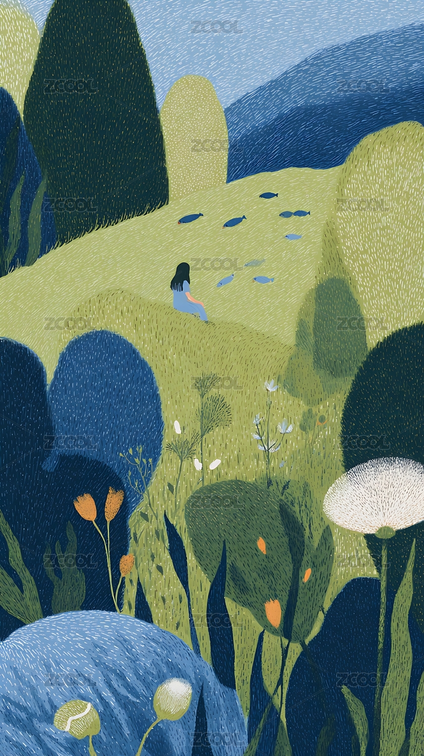 梦幻唯美草原女孩系列插画