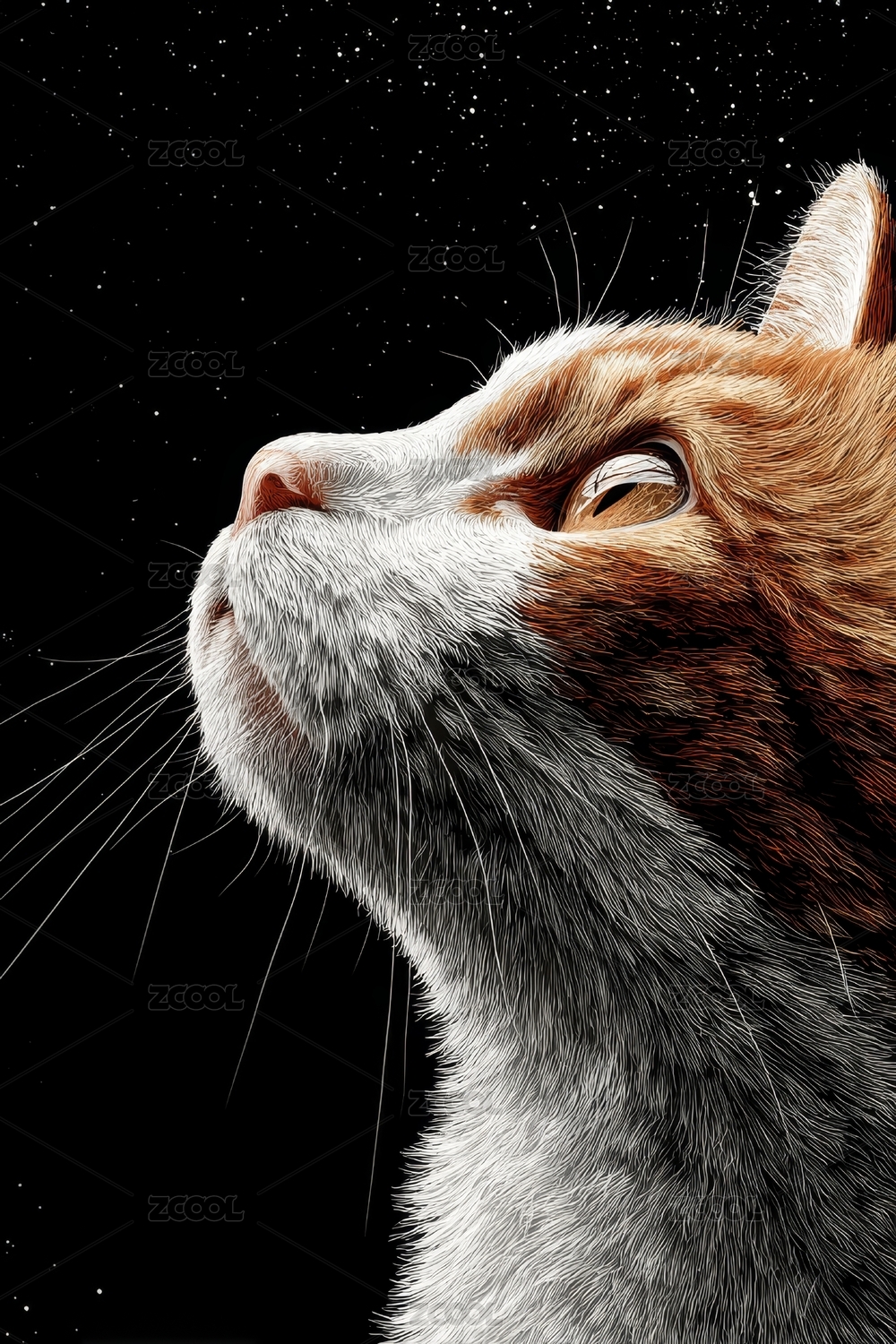 仰望星空橘猫的特写