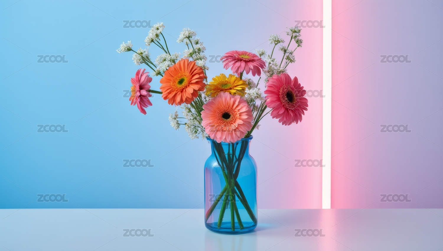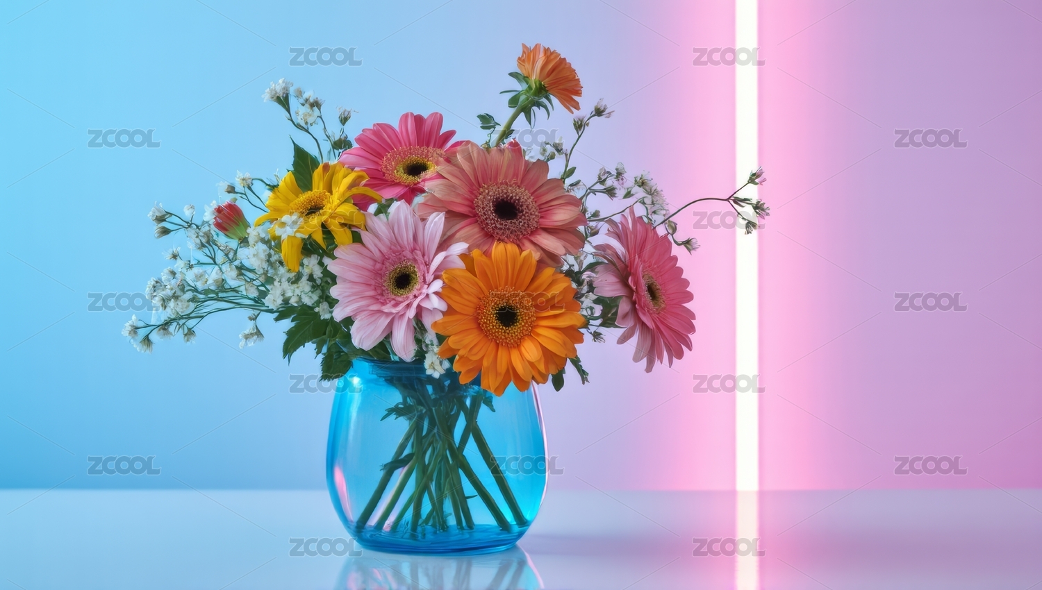 花束,鲜花,花瓶,霓虹灯,粉色,橙色,黄色,白色,花卉,静物