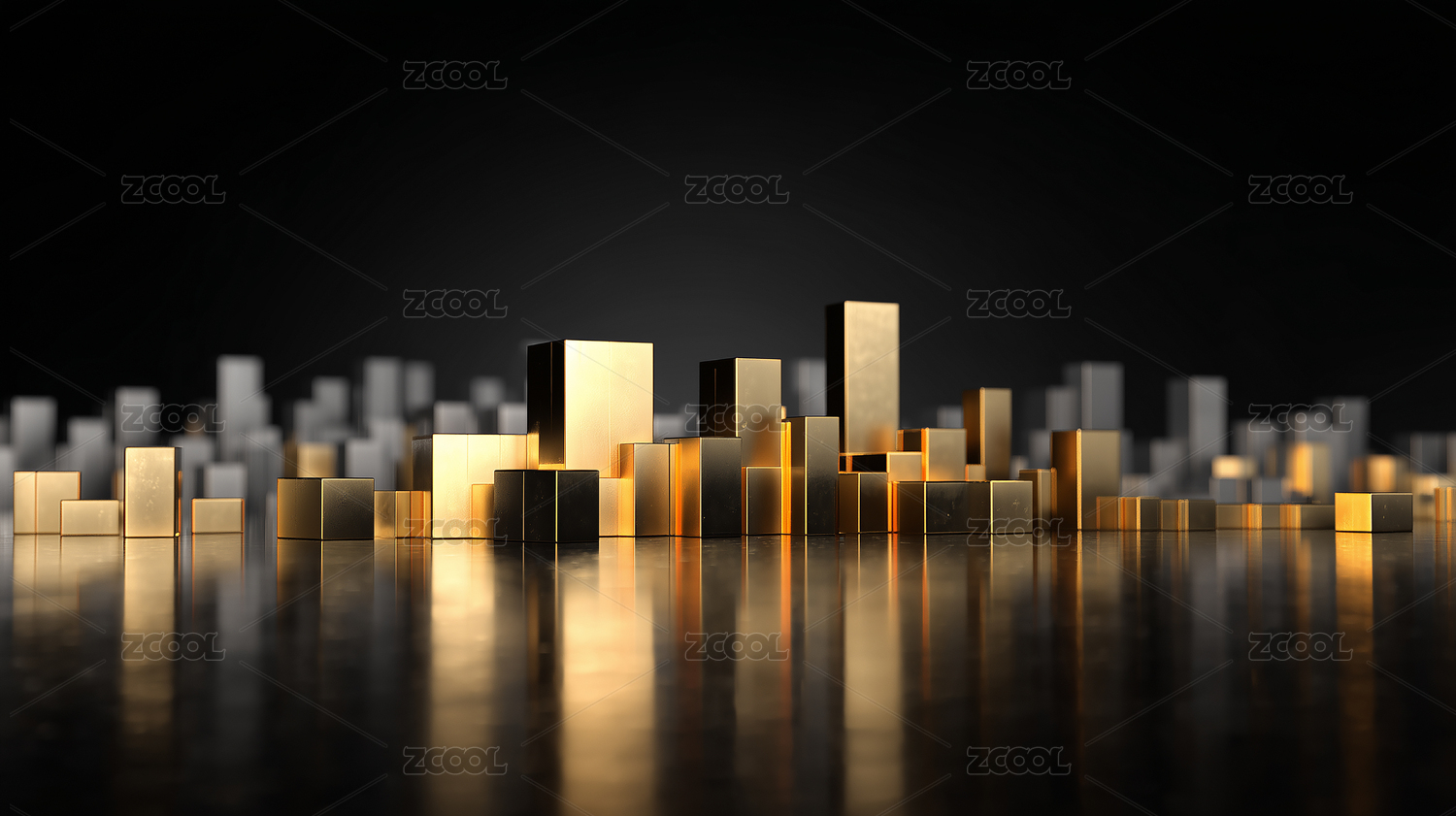 金色立方体城市天际线