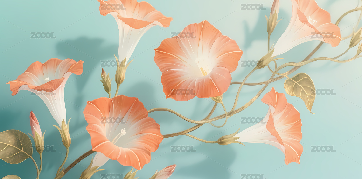 橙色牵牛花在淡蓝背景下的优雅绽放