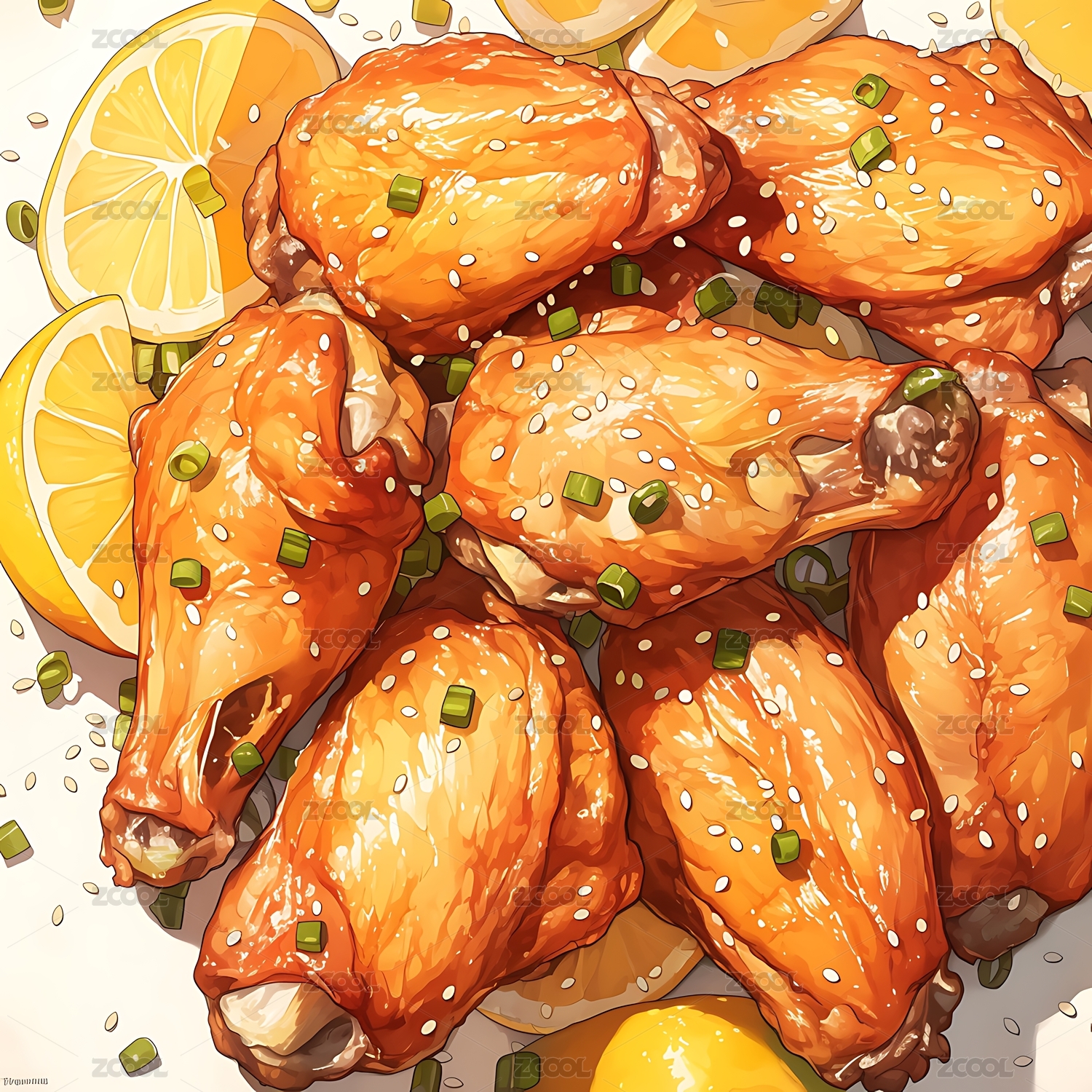 插画,鸡腿,美食,烹饪,鸡肉,葱花,美味,手绘,食欲,色彩