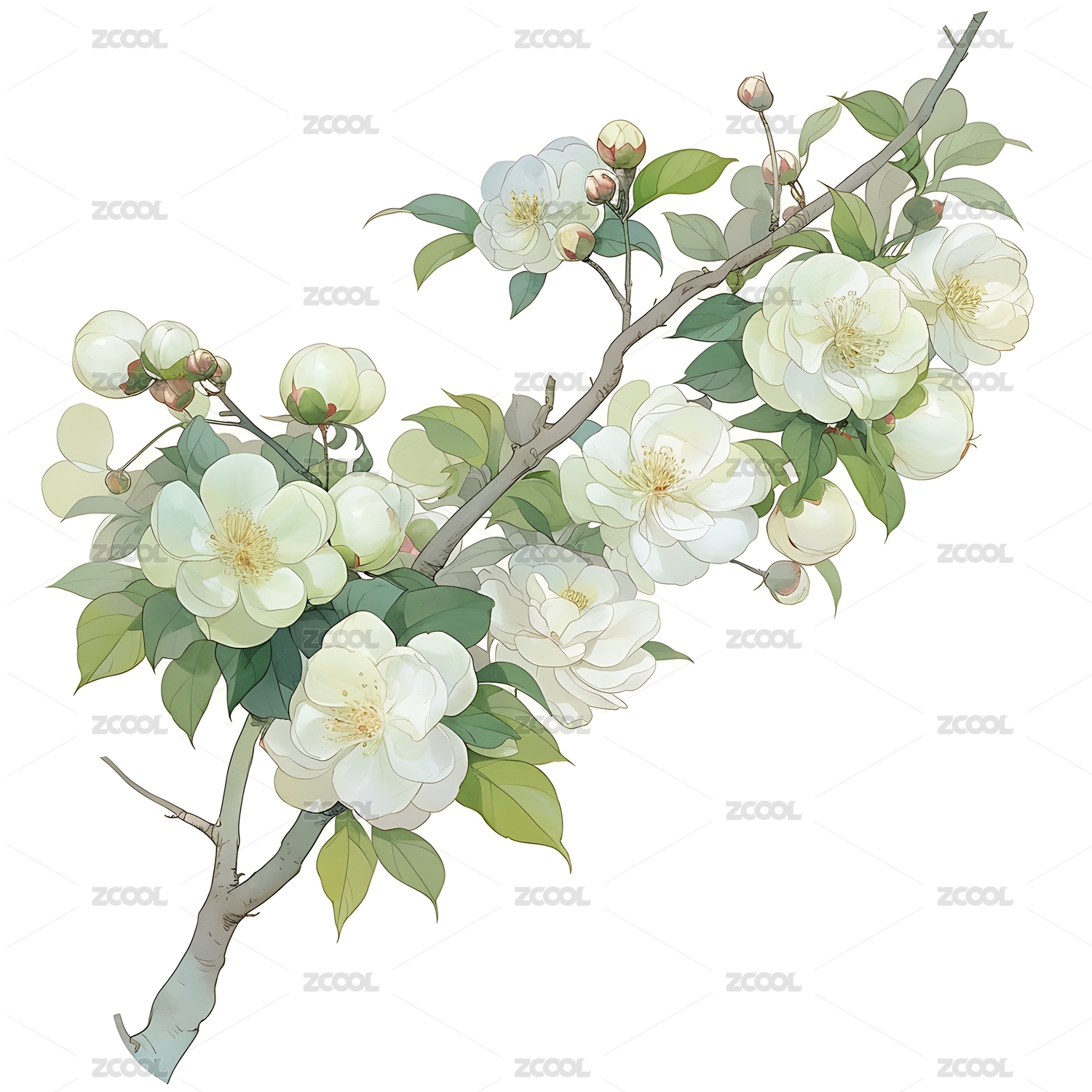 茉莉花,花卉,插画,白花,垂枝,枝条,白色,植物,清新,自然
