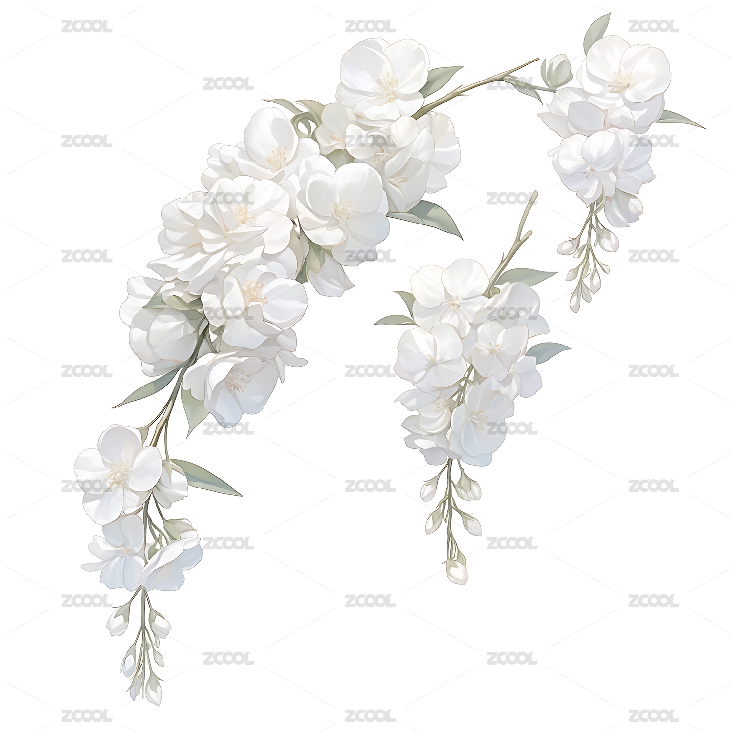 茉莉花,花卉,插画,白花,垂枝,枝条,白色,植物,清新,自然