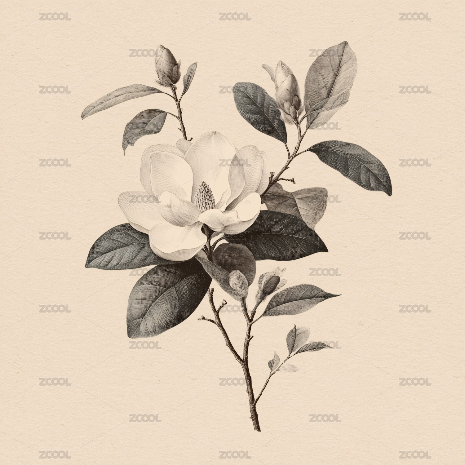 茉莉花,花卉,插画,白花,垂枝,枝条,白色,植物,清新,自然