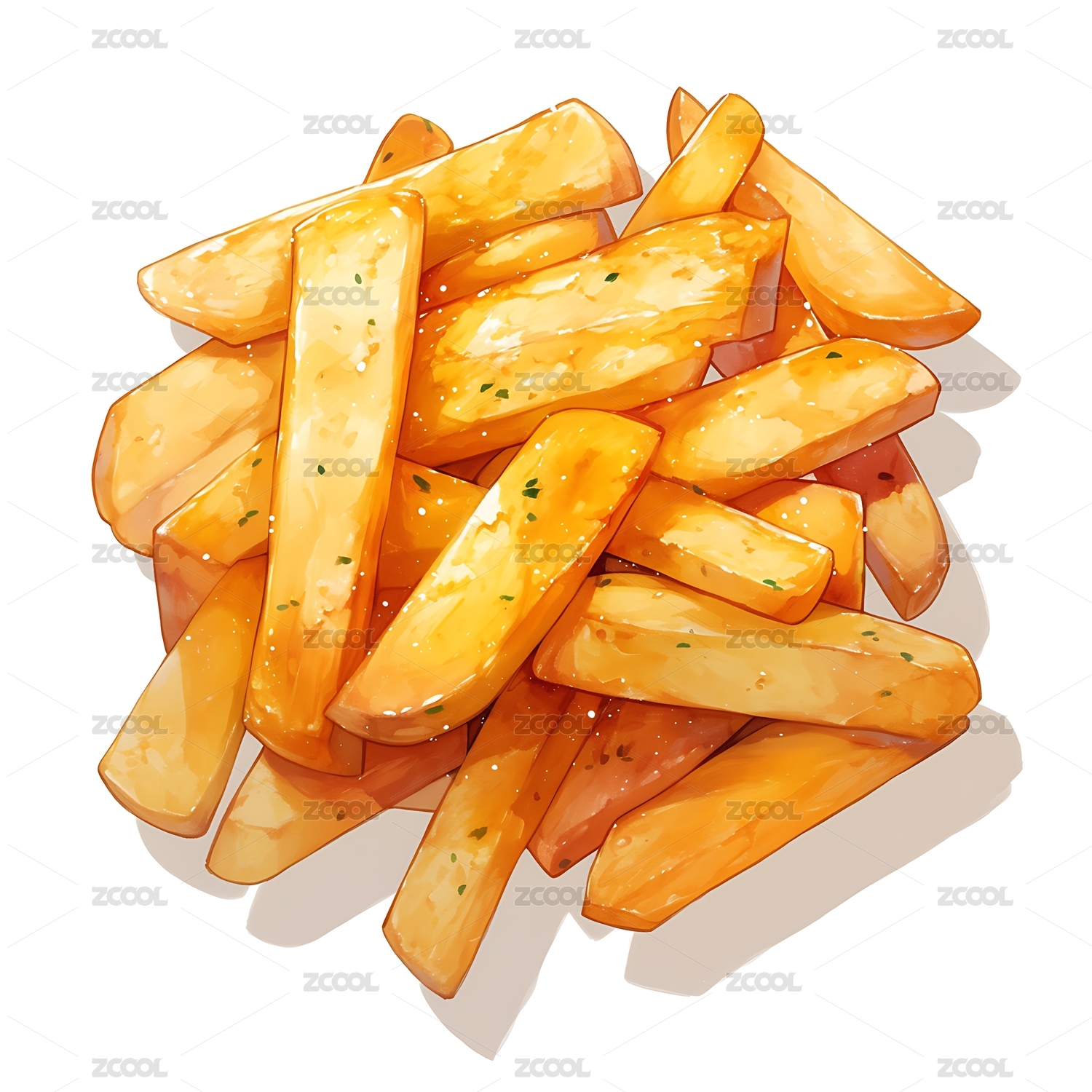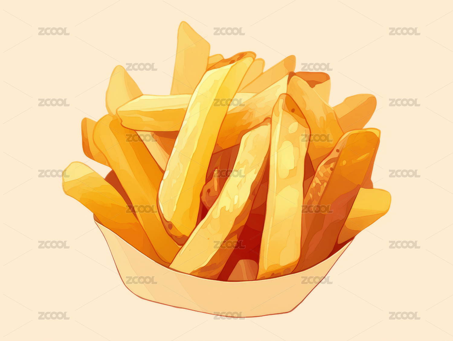 薯条,散装,撒盐,金黄,膨化食品,美食,插画,手绘,快餐,油炸