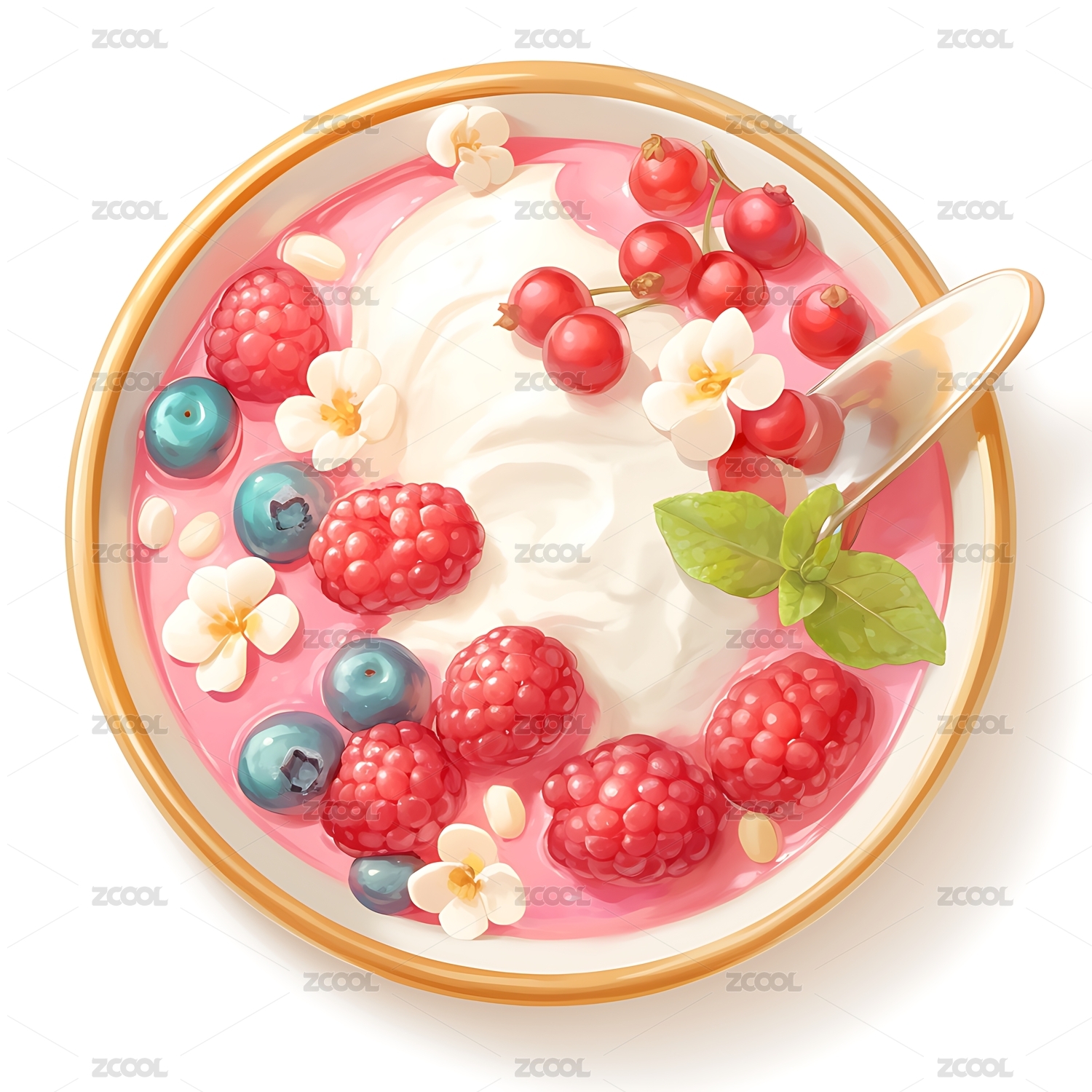 酸奶,水果,燕麦,碗装,蓝莓,美食,健康,早餐,营养,插画