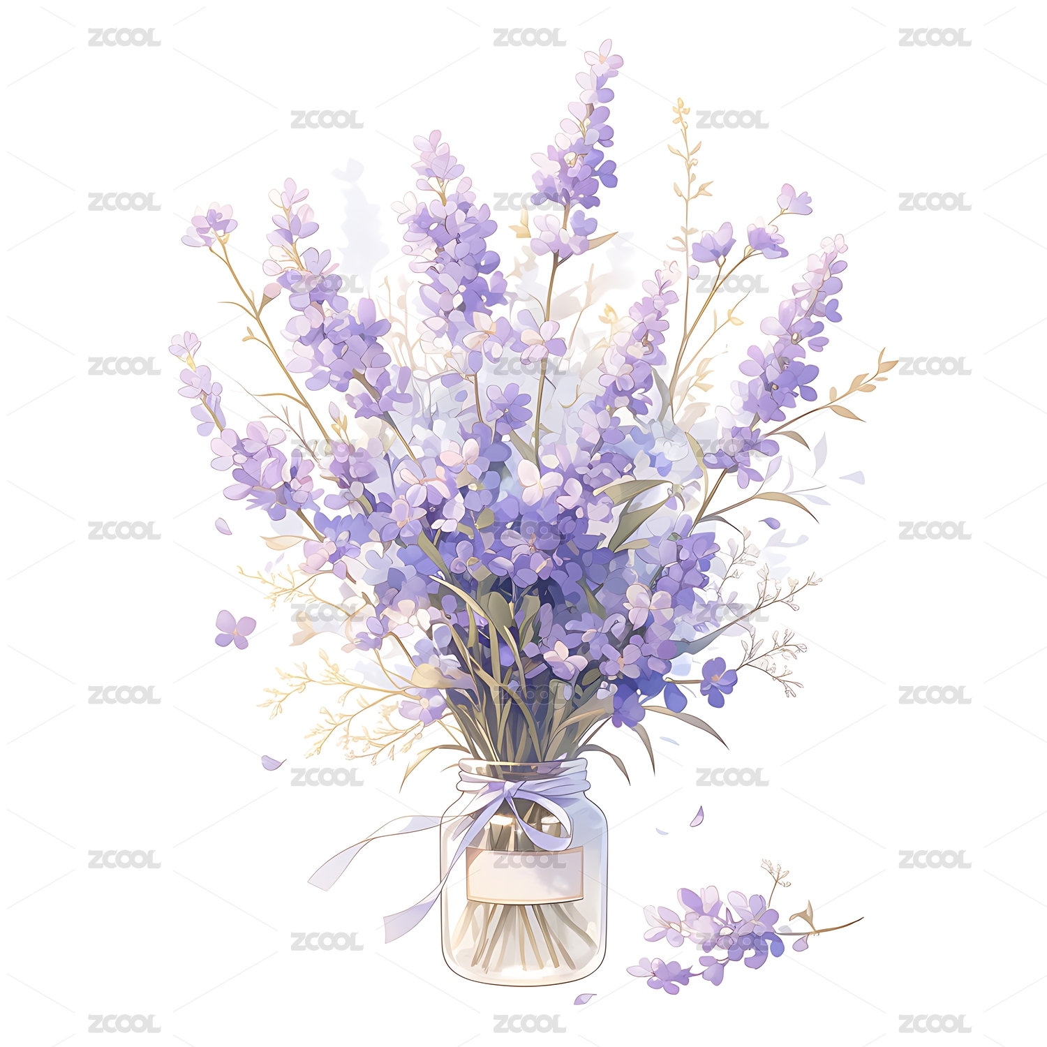 薰衣草,花卉,花束,淡紫,插画,水彩,清新,自然,植物,简约