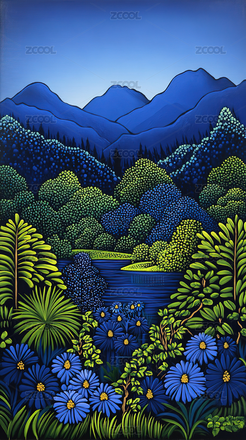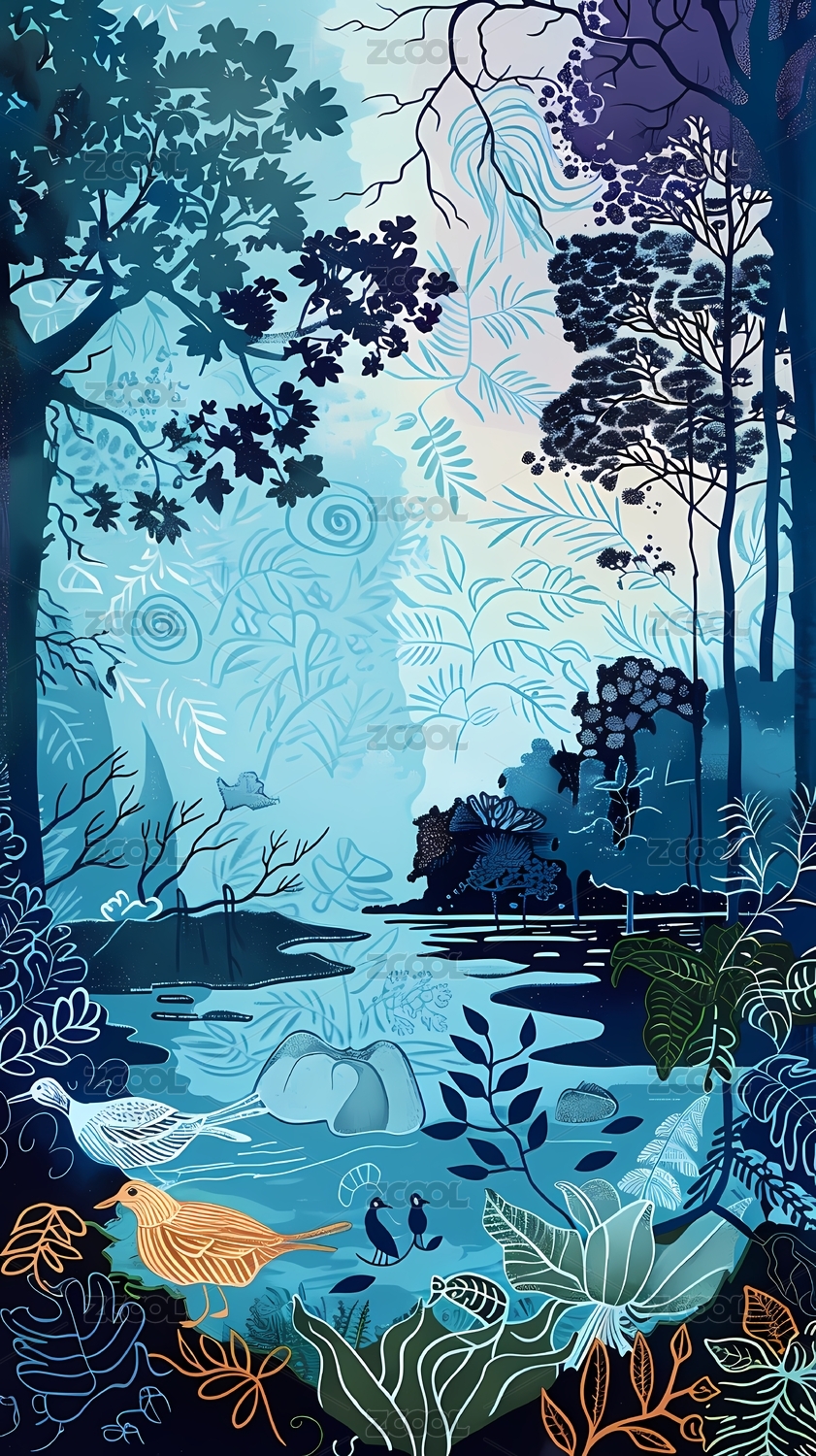 郁郁葱葱的森林风景插画