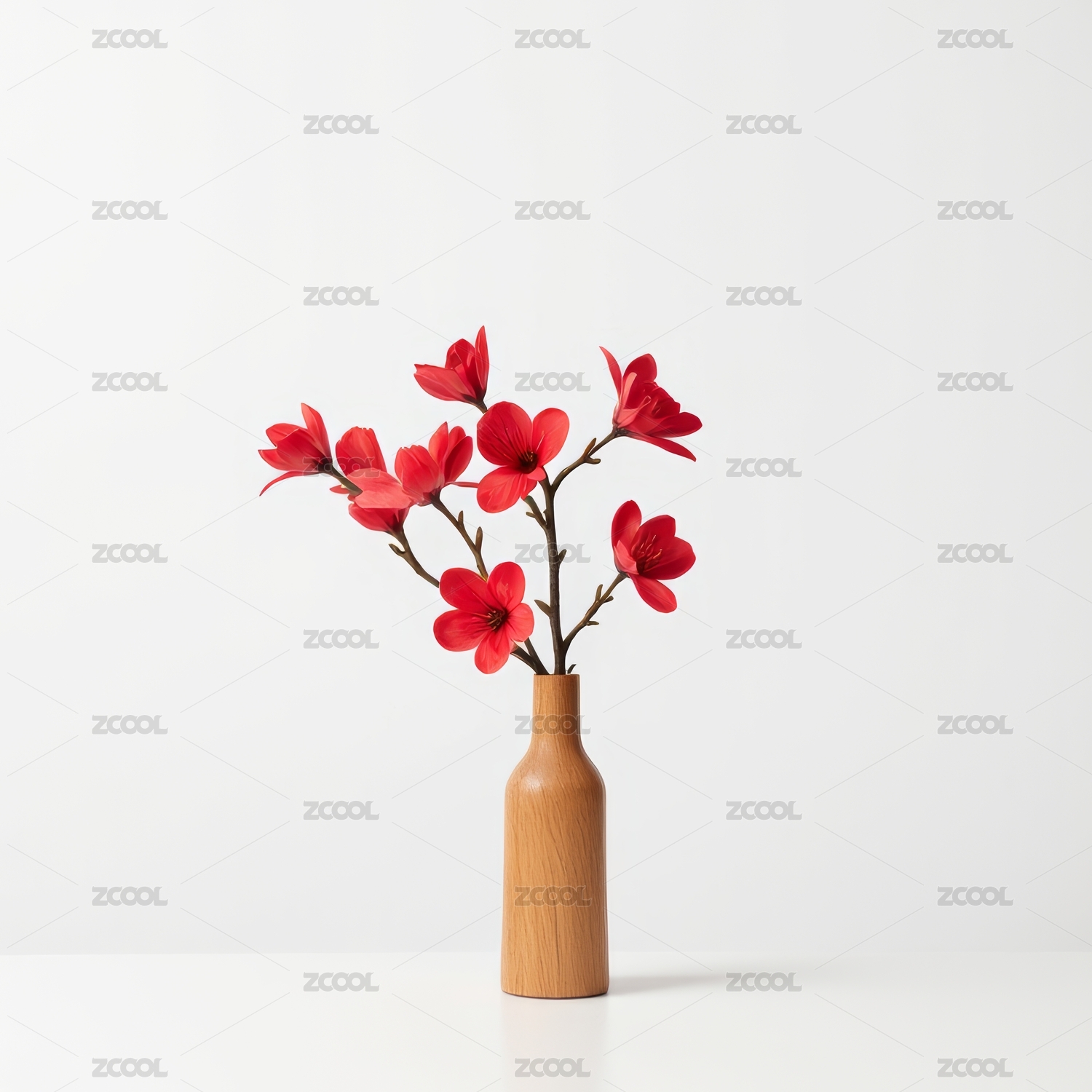 花瓶,装饰,摆件,静物,艺术,红花,木质花瓶,简约,清新,文艺