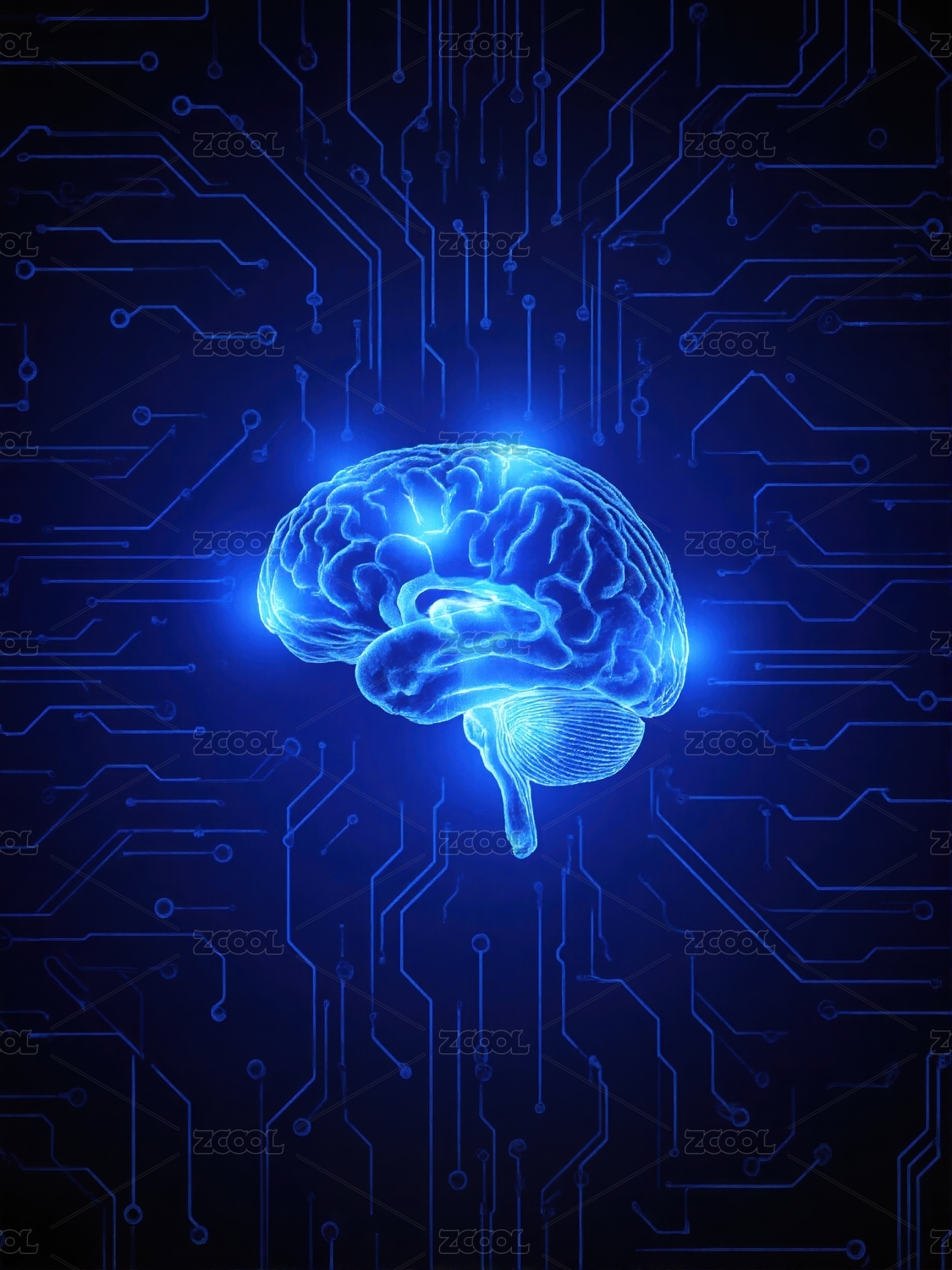 科技芯片、未来科技的人类大脑、 电路板人类大脑。