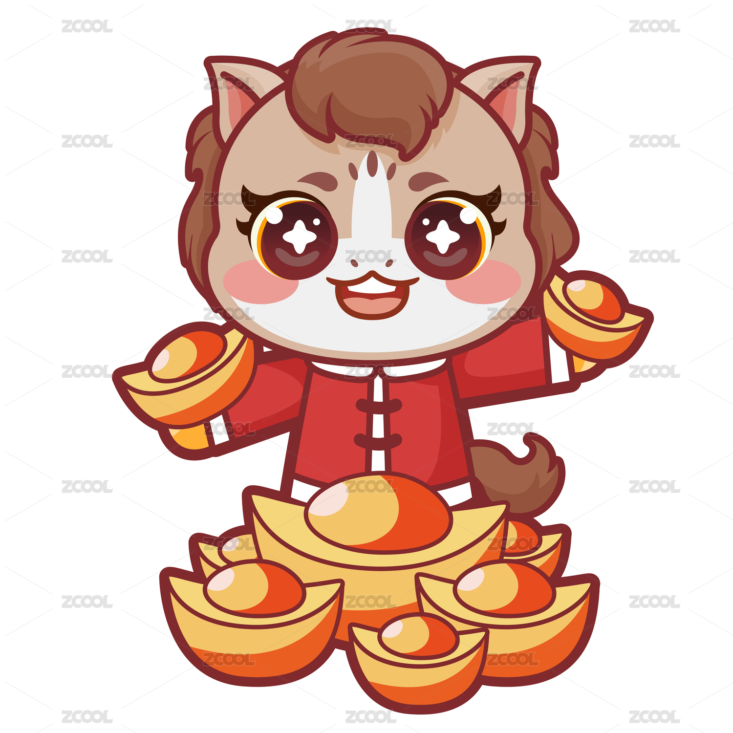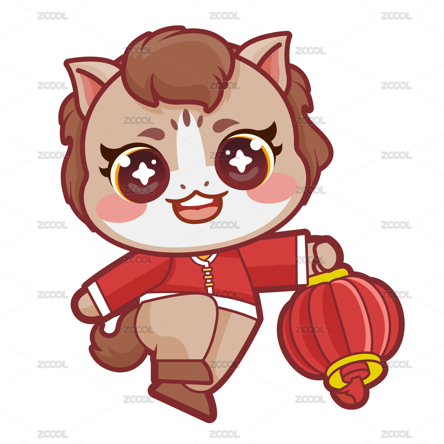 午马生肖马年卡通矢量插画