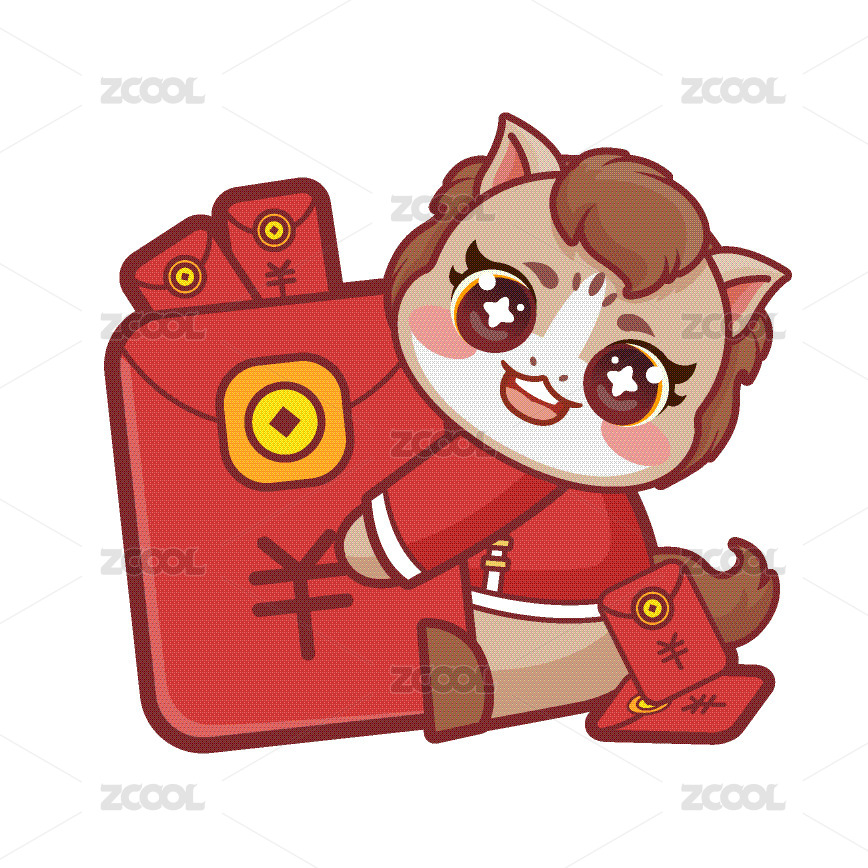 可爱马手拿红包矢量插画