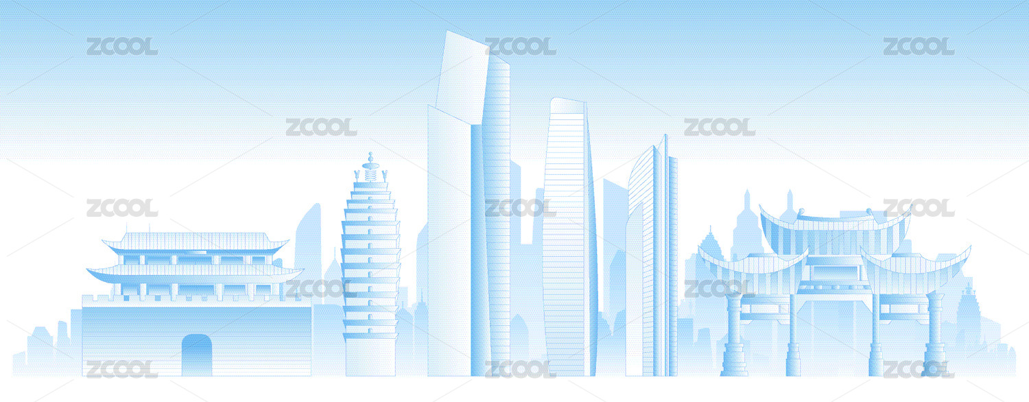 蓝色,建筑,插画,简约,城市,都市,经济,极简,中心,发展