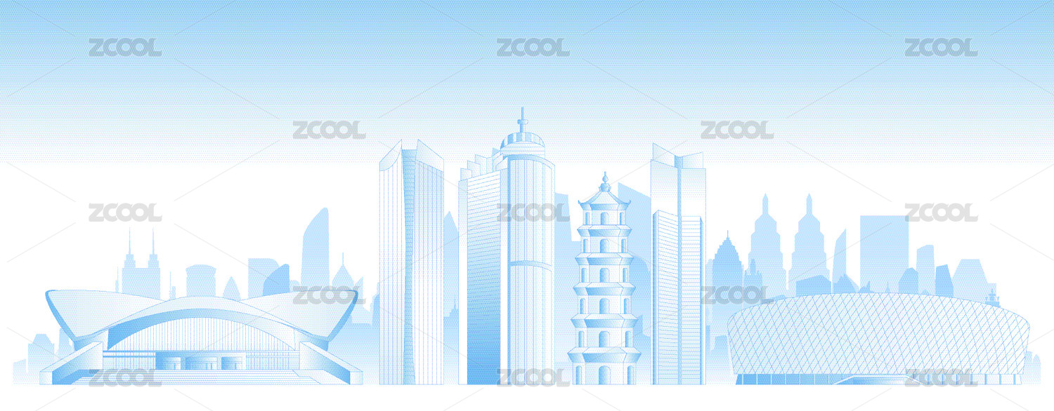 蓝色,建筑,插画,简约,城市,都市,经济,极简,中心,发展