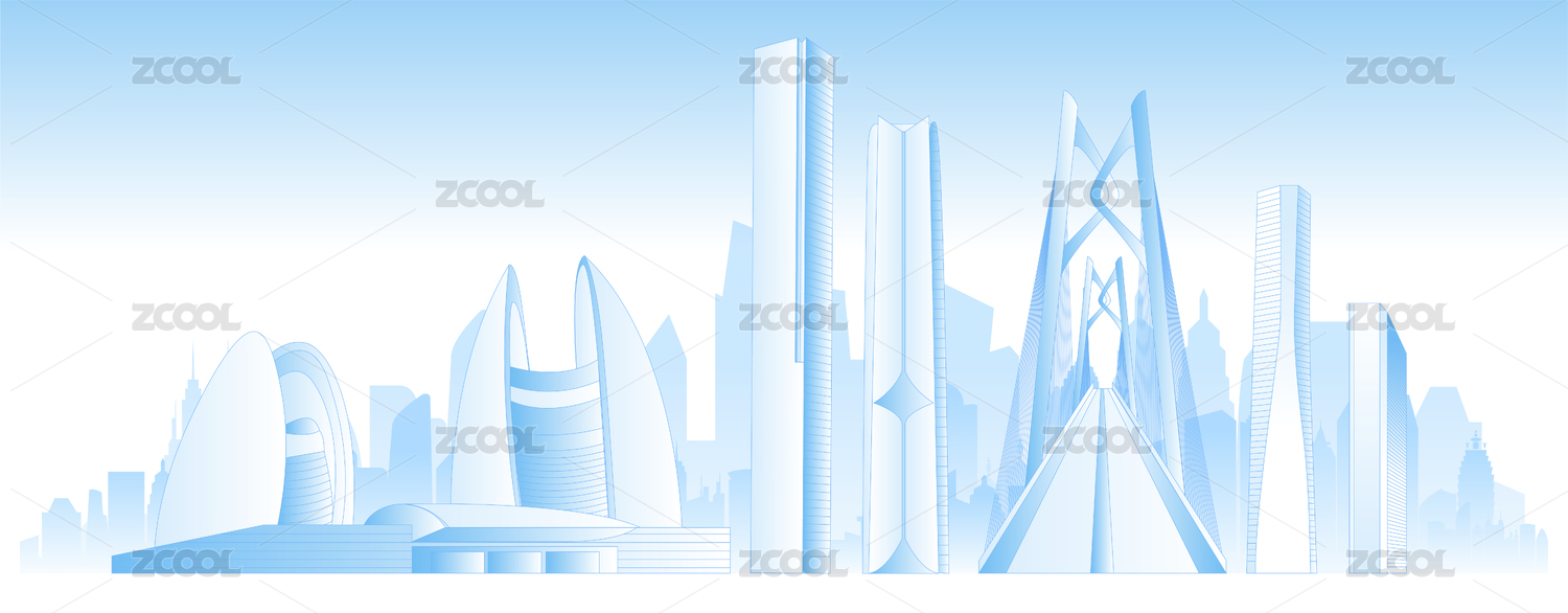 蓝色,建筑,插画,简约,城市,都市,经济,极简,中心,发展