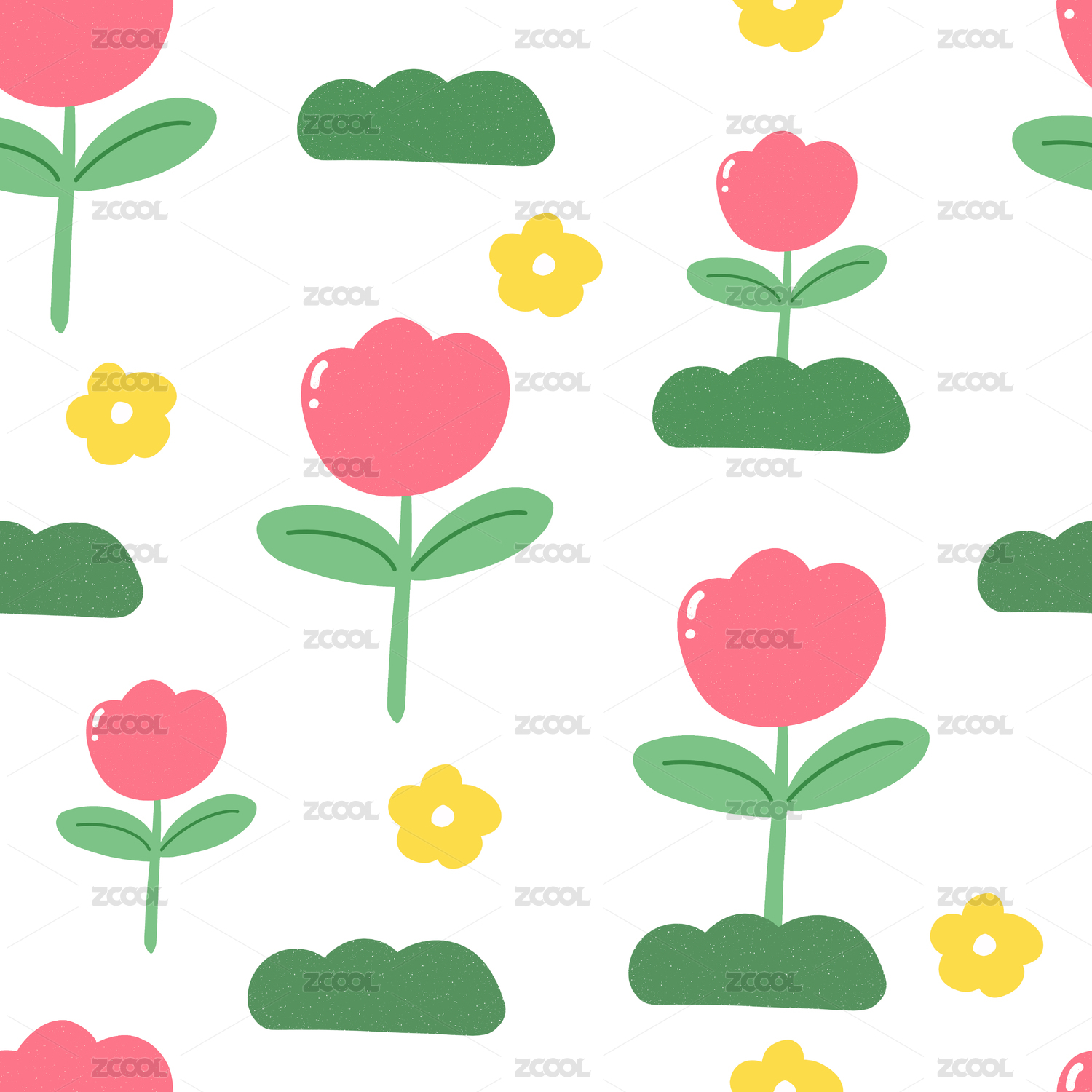 儿童手绘卡通可爱花朵无缝四方连续背景